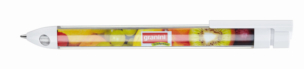Druckkugelschreiber mit Dreikantgehäuse und individuell gestaltbarer Einlage. Spitze und Drücker in weiß gedeckt, Schaft transparent glänzend.Der UMA Pen UMA INSIDE CI Druckkugelschreiber in der Farbe klar ist ein hochwertiges Schreibgerät der Marke UMA. Die Werbekugelschreiber der Marke UMA Kugelschreiber zeichnen sich durch ein modernes und zeitloses Design aus. Der UMA INSIDE CI Druckkugelschreiber transportiert Ihre Werbebotschaft auf eindrucksvolle Weise und zeichnet sich durch höchste Schreibqualität aus.