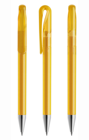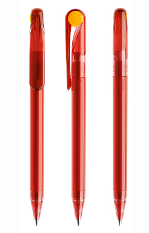 In der Ausführung mit transparentem Gehäuse (TTT) lieferbar in sechs Standardfarben, Sondergehäusefarben ab 10'000 Stück (Kappenpunkt in Sondergehäusefarbe ab 5'000 Stück). Fünf Druckflächen für Werbeanbringungen stehen zur Verfügung. Der optionale Kappenpunkt ist auf beiden Seiten in fünf Farben bedruckbar. Das hochwertige FLOATING BALL ® Schreibsystem sorgt für ein noch weicheres Schreibgefühl.