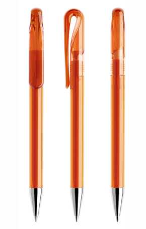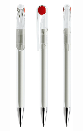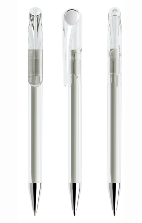 In der Ausführung mit transparentem Gehäuse und polierter Metallspitze (TTC ) lieferbar in sechs Standardfarben, Sondergehäusefarben ab 10'000 Stück (Kappenpunkt in Sondergehäusefarbe ab 5'000 Stück). Fünf Druckflächen für Werbeanbringungen stehen zur Verfügung. Der Kappenpunkt ist auf beiden Seiten in fünf Farben bedruckbar. Das hochwertige FLOATING BALL ® Schreibsystem sorgt für ein noch weicheres Schreibgefühl.