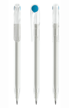 In der Ausführung mit gefrostetem Gehäuse (TFF) lieferbar in sechs Standardfarben, Sondergehäusefarben ab 10'000 Stück (Kappenpunkt in Sondergehäusefarbe ab 5'000 Stück). Fünf Druckflächen für Werbeanbringungen stehen zur Verfügung. Der optionale Kappenpunkt ist auf beiden Seiten in fünf Farben bedruckbar. Das hochwertige FLOATING BALL ® Schreibsystem sorgt für ein noch weicheres Schreibgefühl.