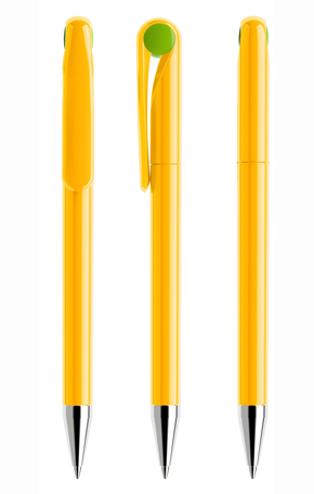 In der Ausführung mit vollfarben poliertem Gehäuse und polierter Metallspitze (TPC) lieferbar in sechs Standardfarben, Sondergehäusefarben ab 10'000 Stück (Kappenpunkt in Sondergehäusefarbe ab 5'000 Stück). Fünf Druckflächen für Werbeanbringungen stehen zur Verfügung. Der optionale Kappenpunkt ist auf beiden Seiten in fünf Farben bedruckbar. Das hochwertige FLOATING BALL ® Schreibsystem sorgt für ein noch weicheres Schreibgefühl.