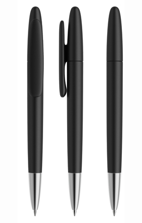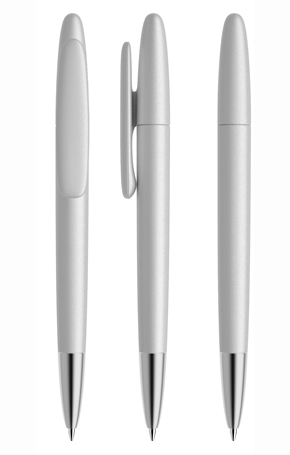 In der Ausführung mit mattem Gehäuse und satinierter Metallspitze (TMS) lieferbar in den Farben Schwarz und Weiß, Sondergehäusefarben ab 10'000 Stück. Sechs Druckflächen für Werbeanbringungen, Inlay im Clip als Option. Das hochwertige FLOATING BALL ® Schreibsystem sorgt für ein noch weicheres Schreibgefühl.