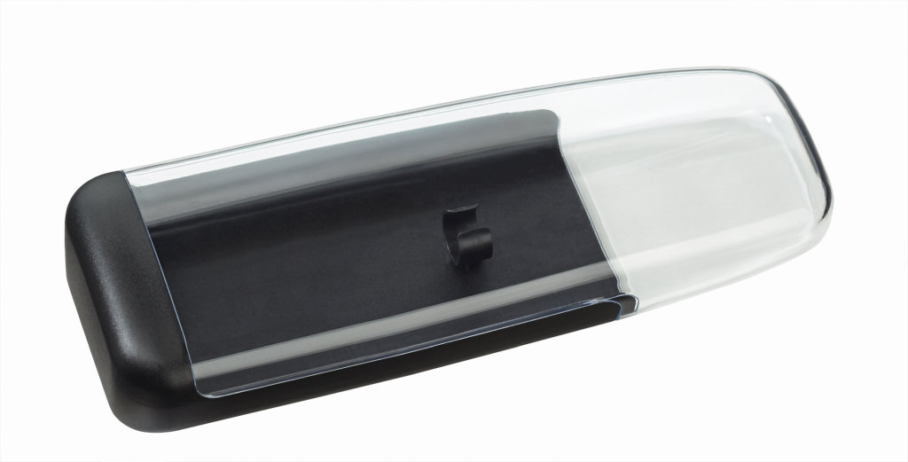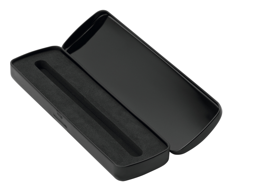 Kunststoff-Etui mit transparentem Deckel und schwarzem Boden für 1 Schreibgerät.