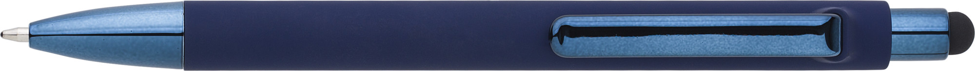 Eingabestift für kapazitive Displays von Smartphones und TabletcomputernAluminium, blau, deutsche Tinte, Großraummine, Kugelschreibermine blau, Polybeutel.