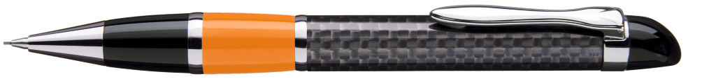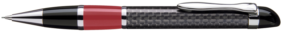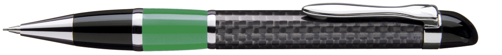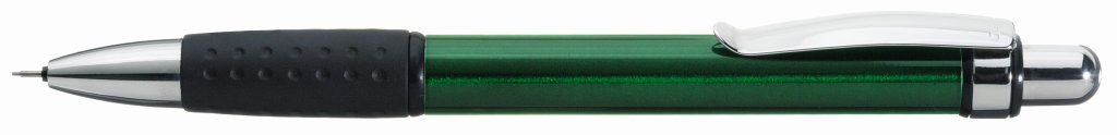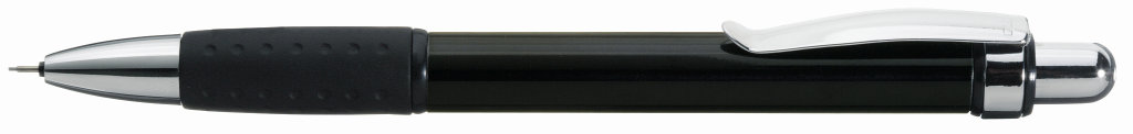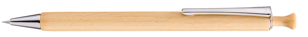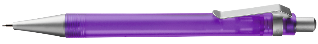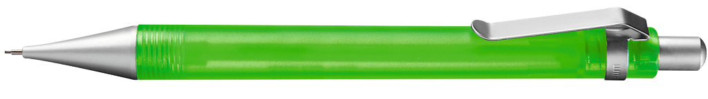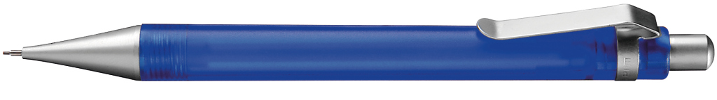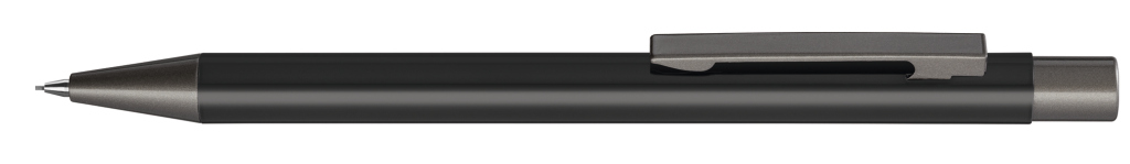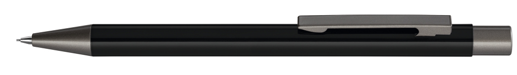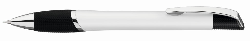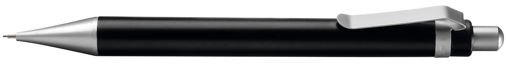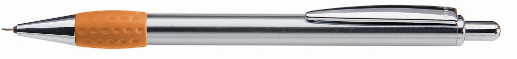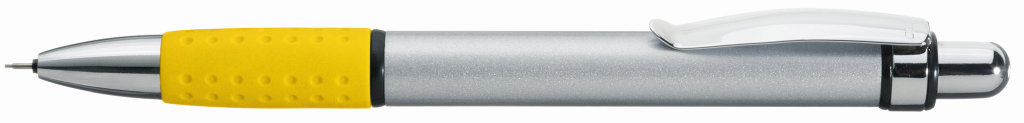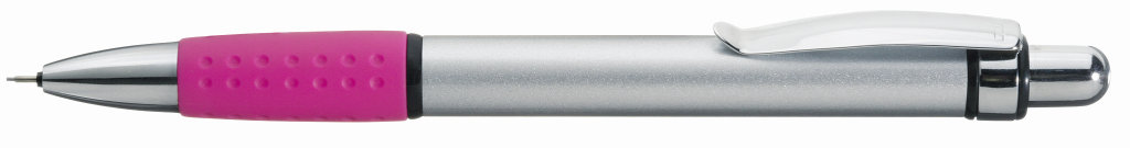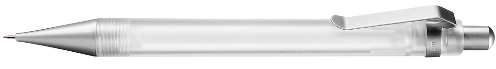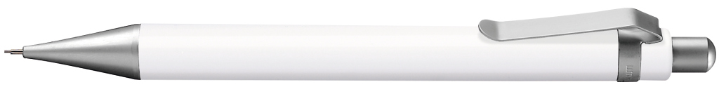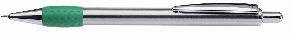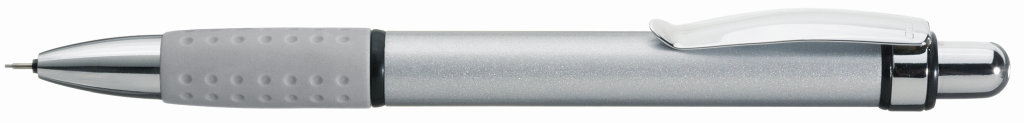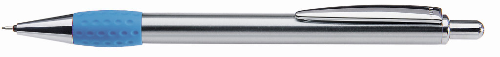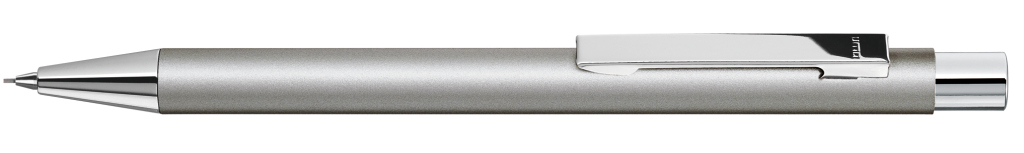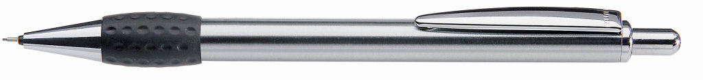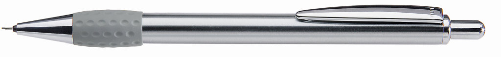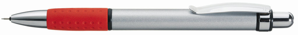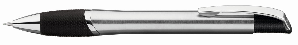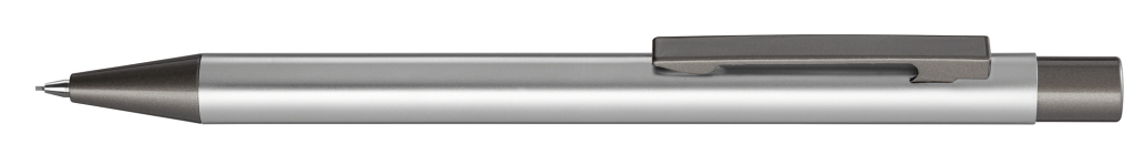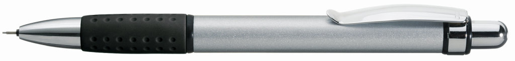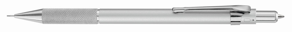 Metall-Druckbleistift (0,5mm) mit integriertem Kugelschreibermine im Drücker, die sich durch einfaches Umdrehen des Druckbleistiftes in Schreibstellung bringt. Gehäuse in silber.