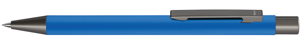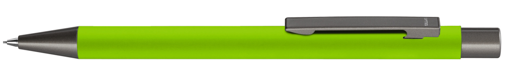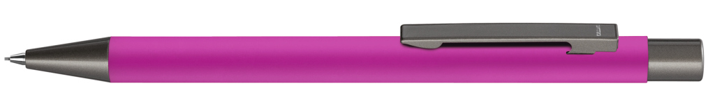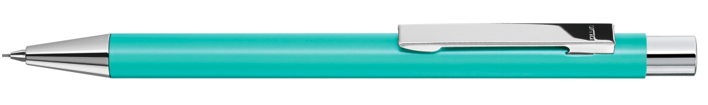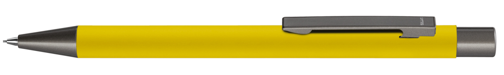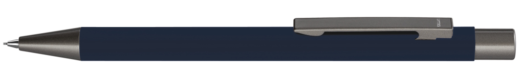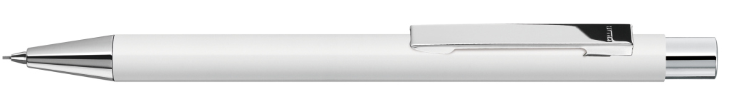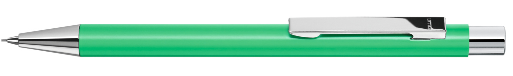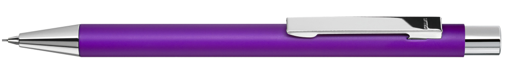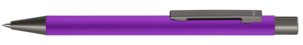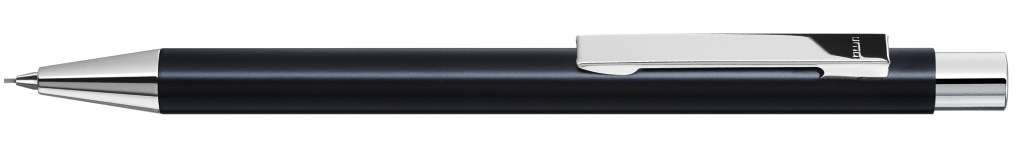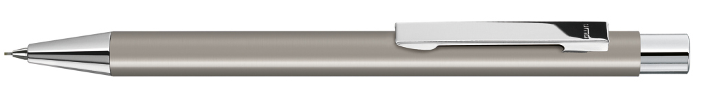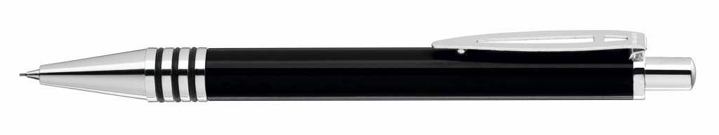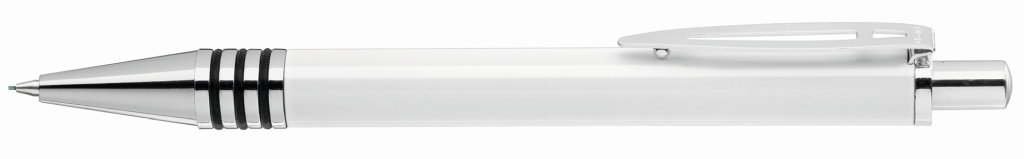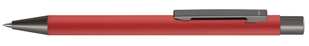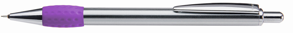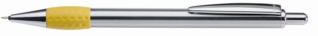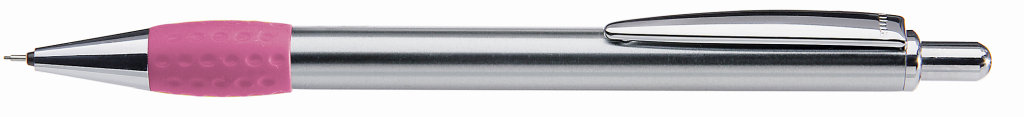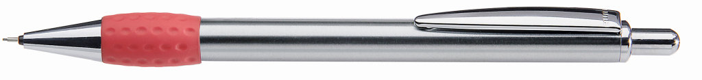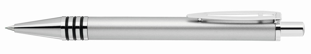 Metall-Druckbleistift (0,7mm) mit 3 eingelassenen, kombinierbaren Gummiringen im Schaft. Glanz lackierter Aluminiumschaft, Beschläge in Metall glanzchrom.