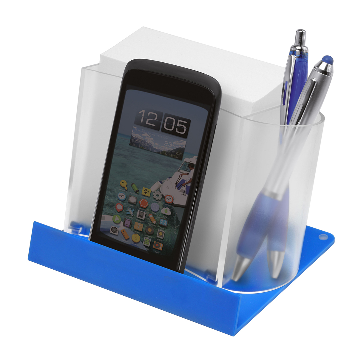 Smartphone-/Tabletständer mit Zettelbox, mit integriertem Stifteköcher und weißem Papier. Die Zettelbox vereint digitales und analoges Arbeiten im Büro und Zuhause.Einzelblattdruck (Farbkombinationen möglich, Druckkosten pro Position, Doming möglich) und Nachfüllzettel (auf Anfrage) für fast alle Zettelboxen erhältlich..