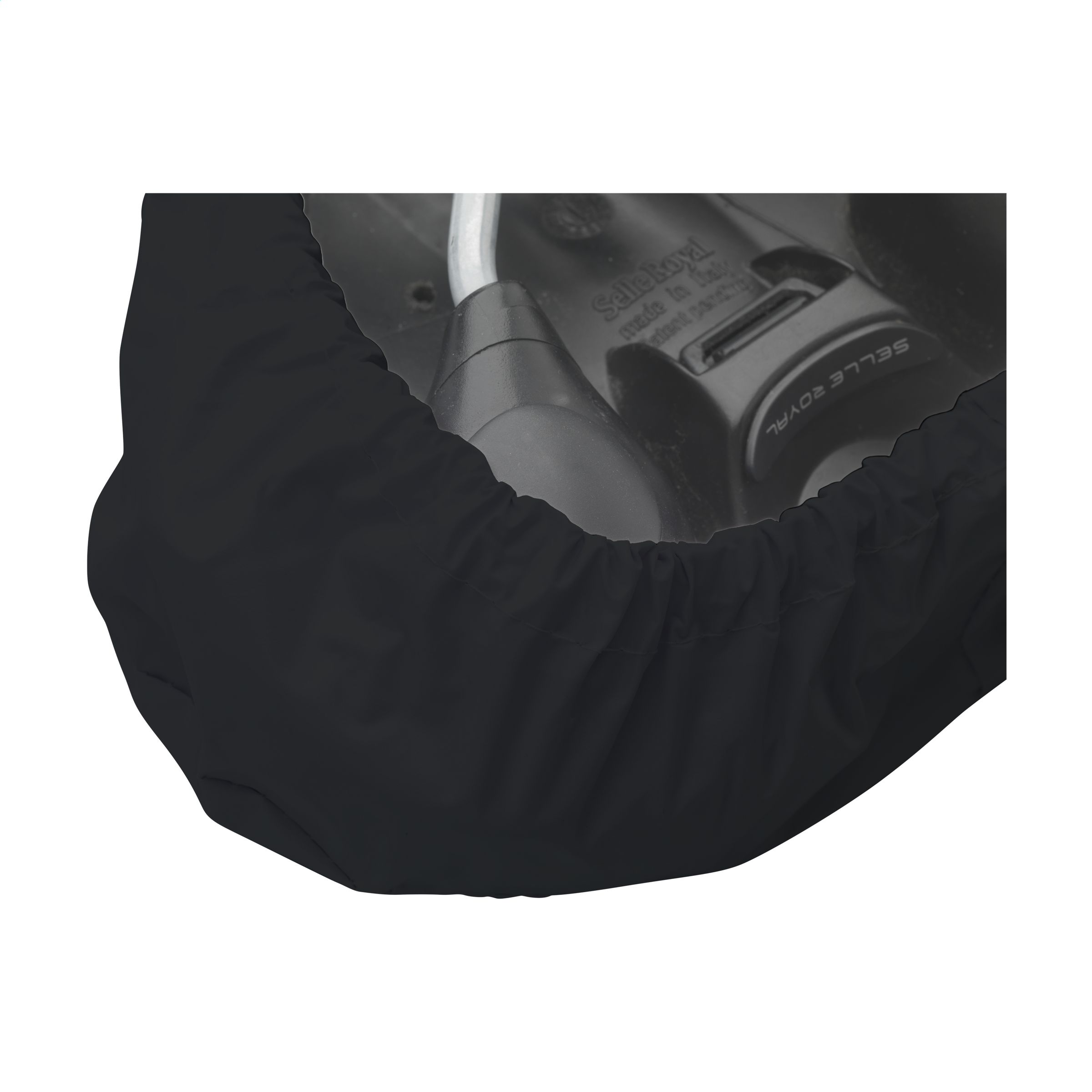 WoW! Sattelüberzug aus recyceltem PVC (60% recyceltes PVC und 40% reines PVC). Jeder Sattelüberzug ist innen mit einer Pappfolie versehen, damit er nicht knittert. Das Gummiband unten ist bei diesem Modell nicht sichtbar, es ist sauber verarbeitet. Der Bezug schützt den Sattel vor Schmutz und Feuchtigkeit (nicht 100% wasserdicht).