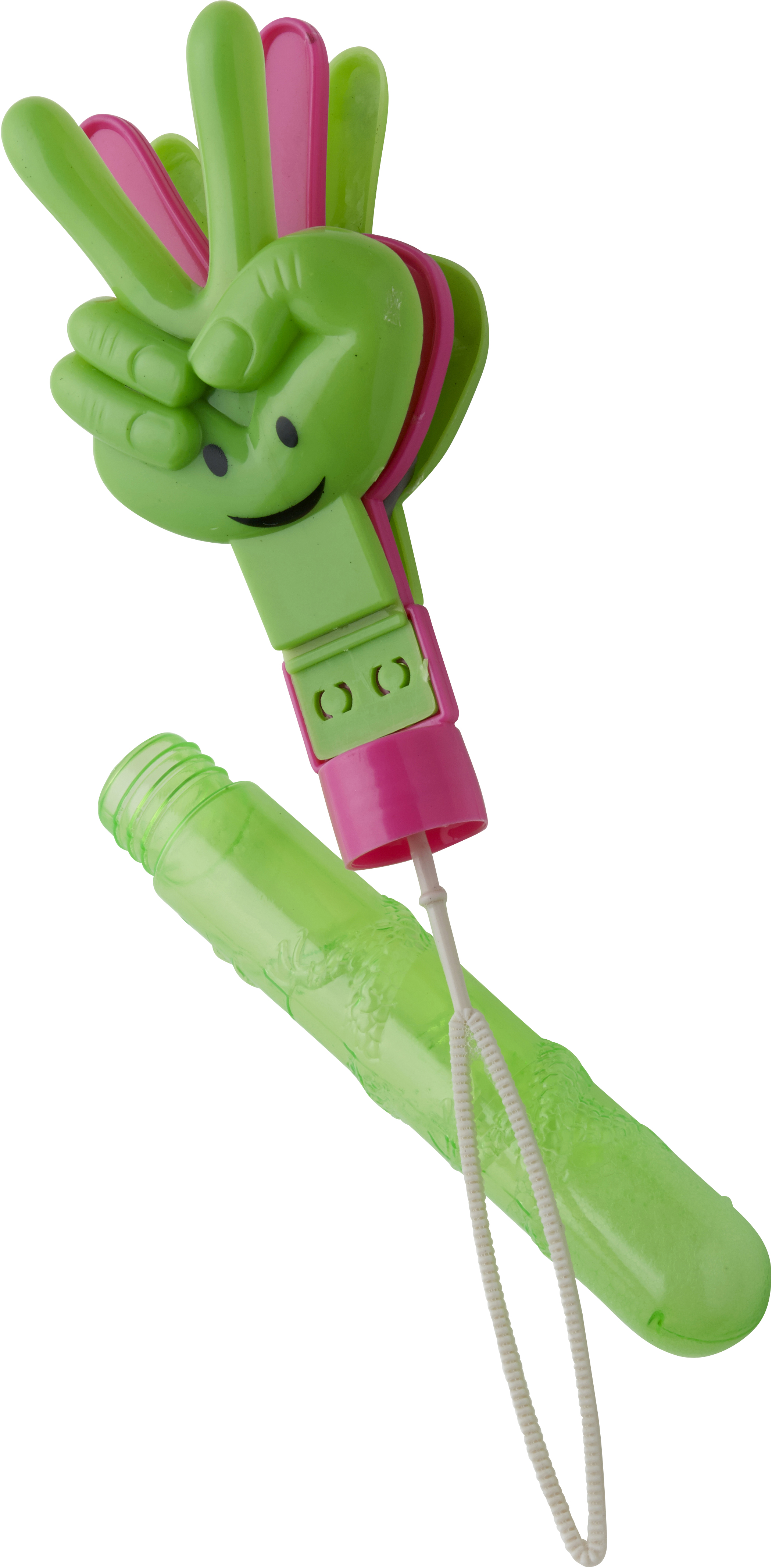 Seifenblasen im Gefäß aus Kunststoff, inklusive Klapperhand-Funktion, 4-tlg. sortiert.