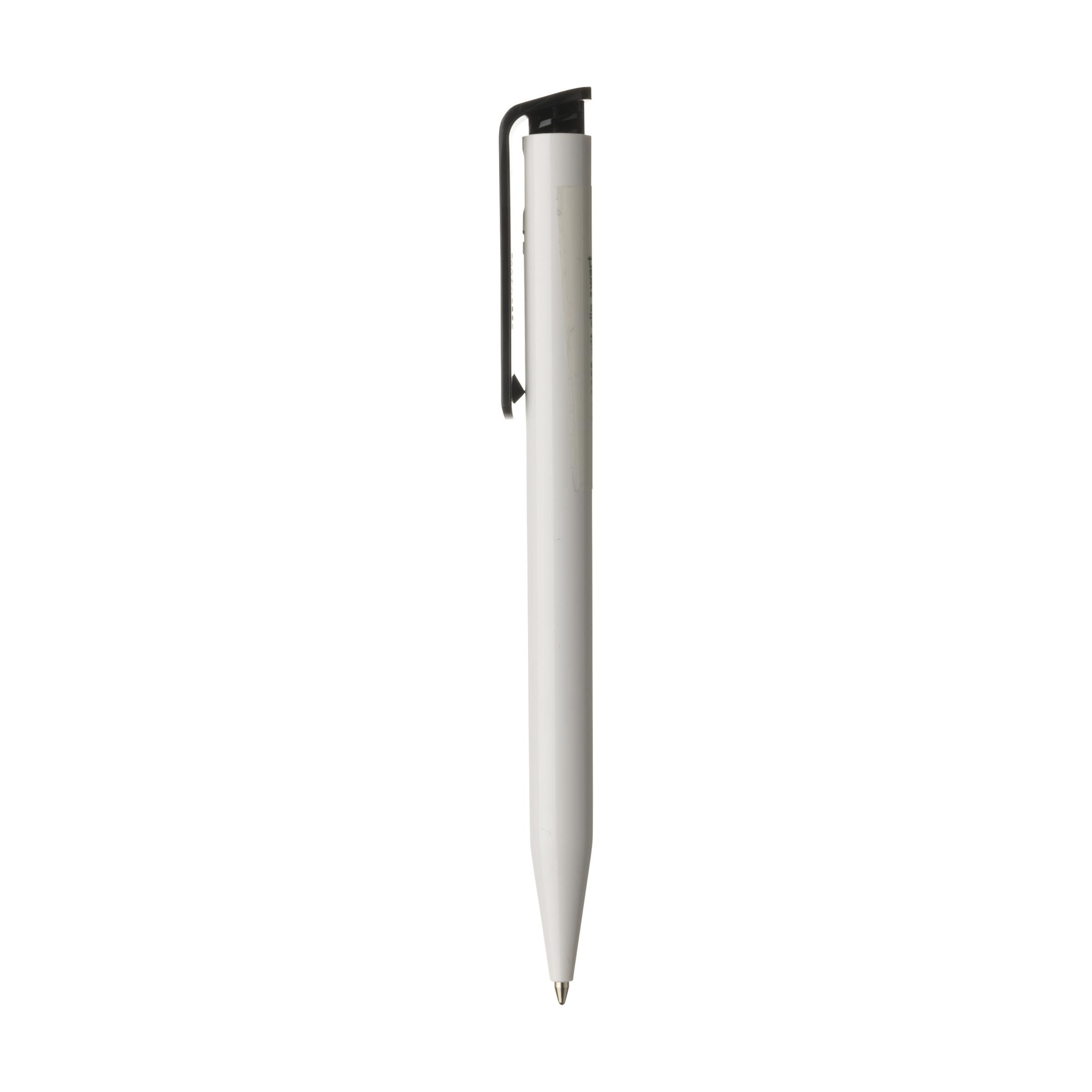 Blauschreibender Kugelschreiber der Marke Senator®. Mit poliertem Gehäuse und großem, auffallendem Clip und Druckknopf. Made in Germany.