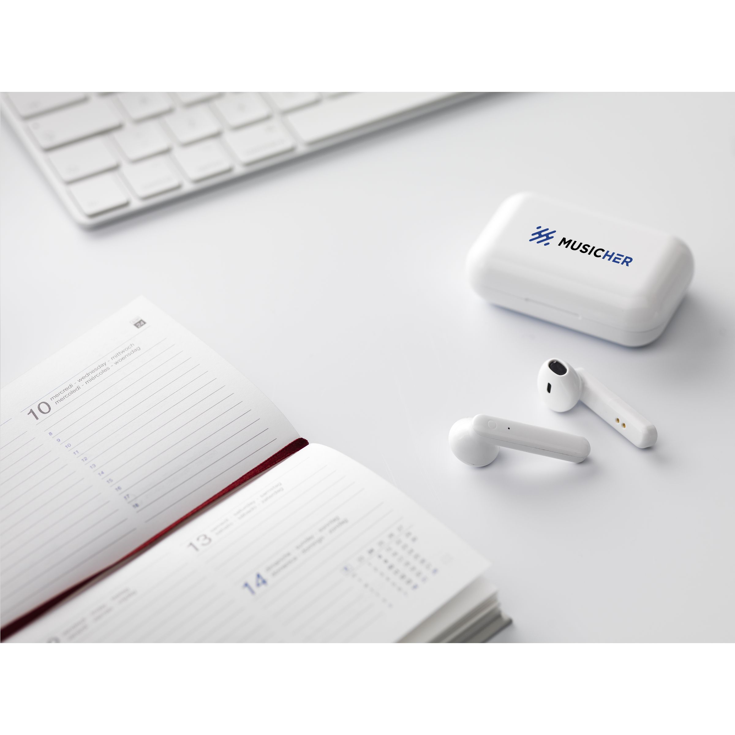 Lorem Ipsum Text6 Gründe dafür, Sensi TWS Kabellose Ohrhörer in Ladecase mit Ihrem Logo bei Promowerk-Werbeartikel.com bedrucken zu lassen.