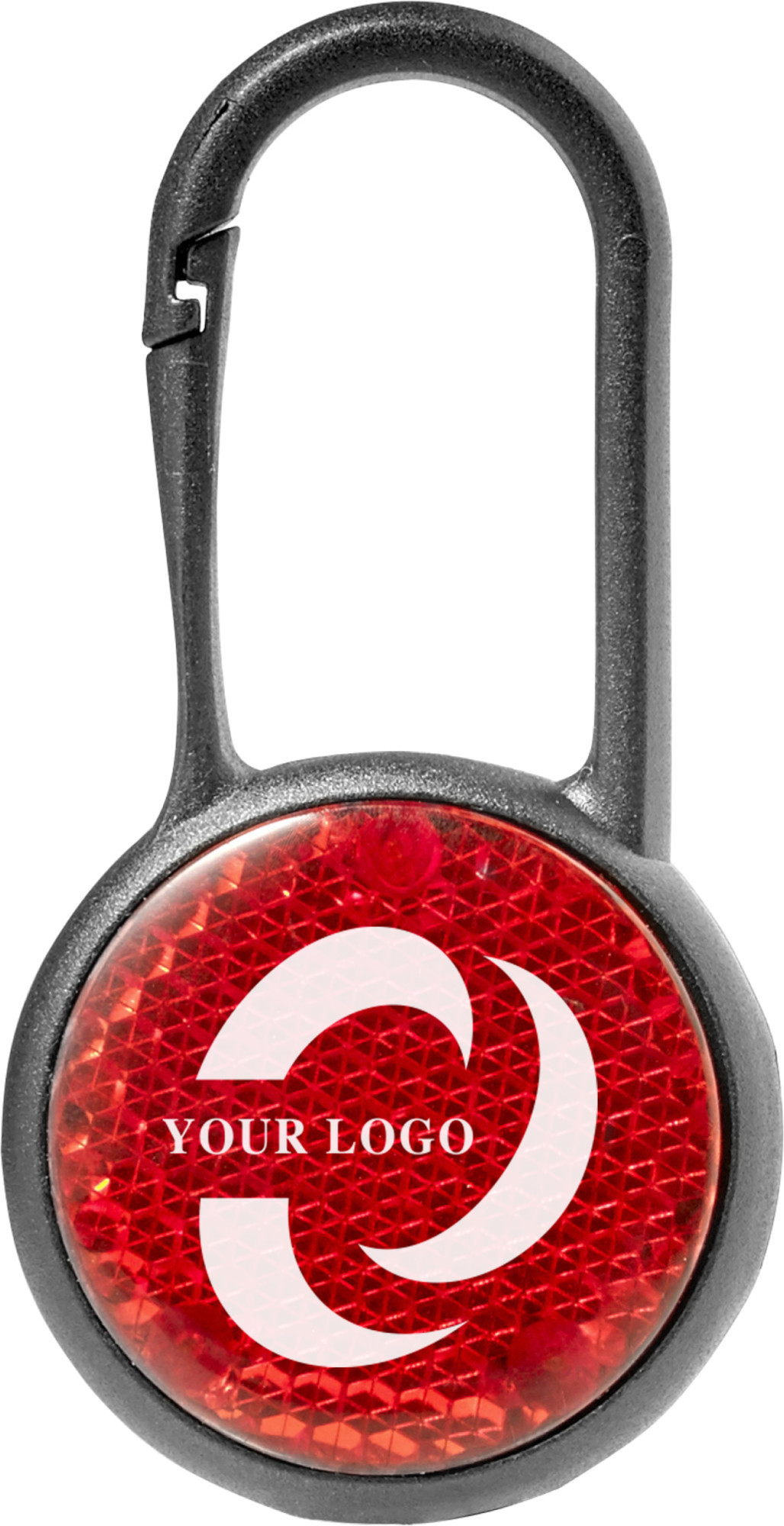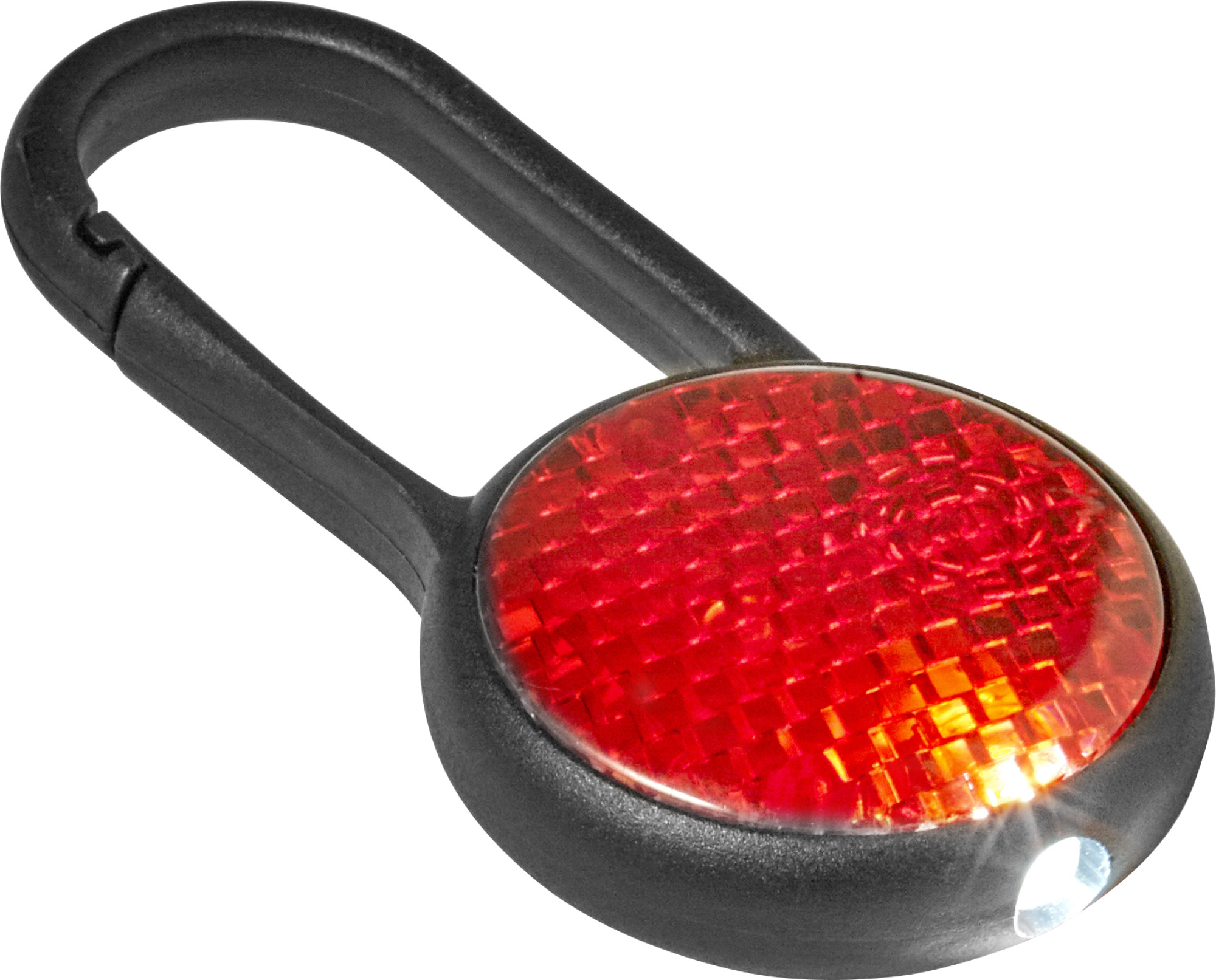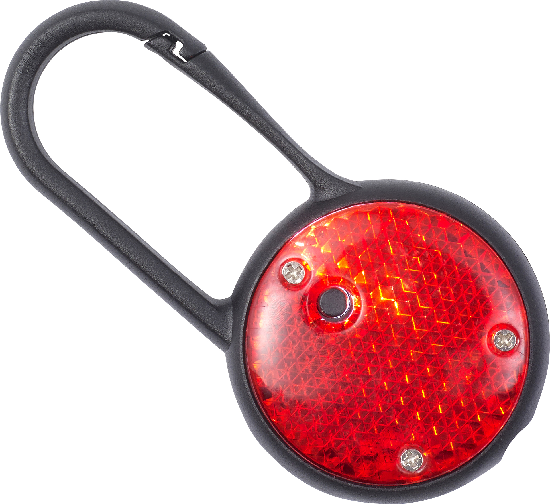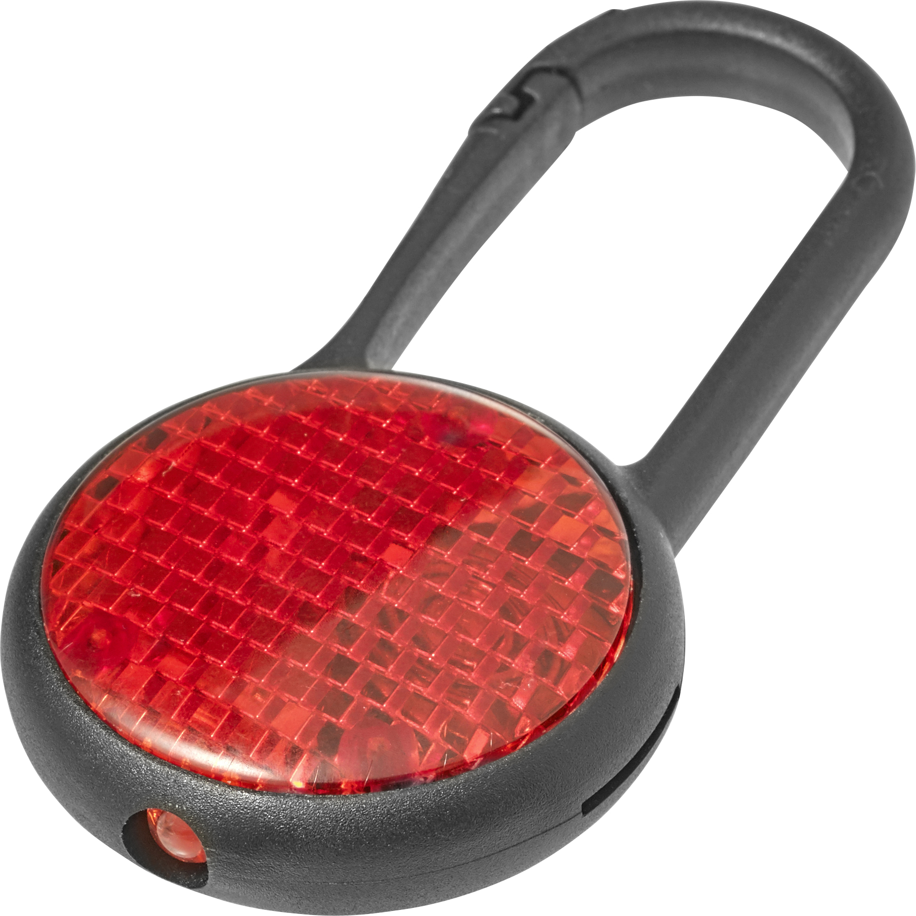 Sicherheitslicht mit Karabinerhaken aus Kunststoff.