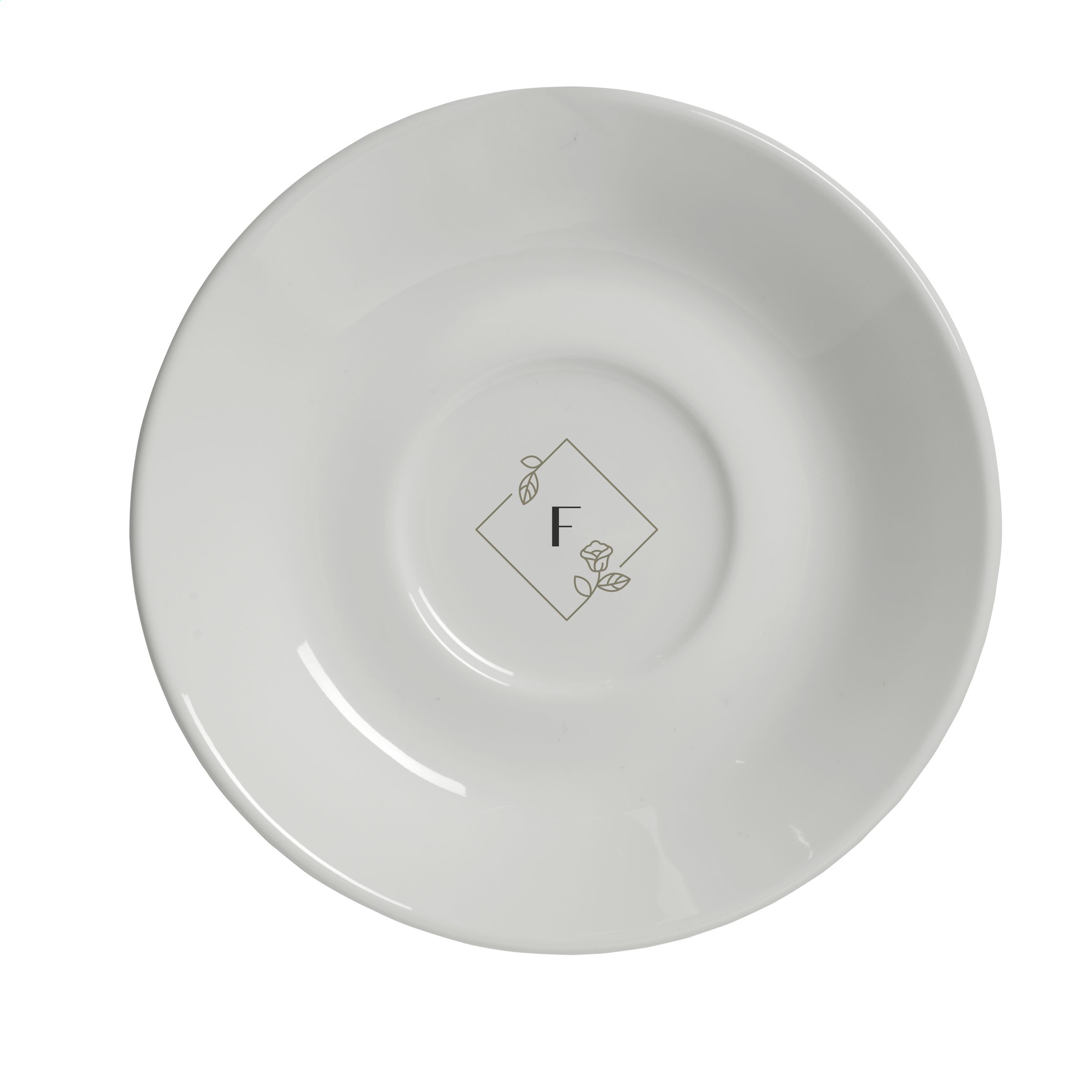 Hochwertige Keramik-Tasse und Untertasse, für Cappuccino. Spülmaschinengeeignet. Fassungsvermögen 210 ml. Der Aufdruck ist spülmaschinengeprüft und nach EN 12875-2 zertifiziert. Maße Tasse 6 x Ø 9,5 cm. Maße Untertasse Ø 14 cm.