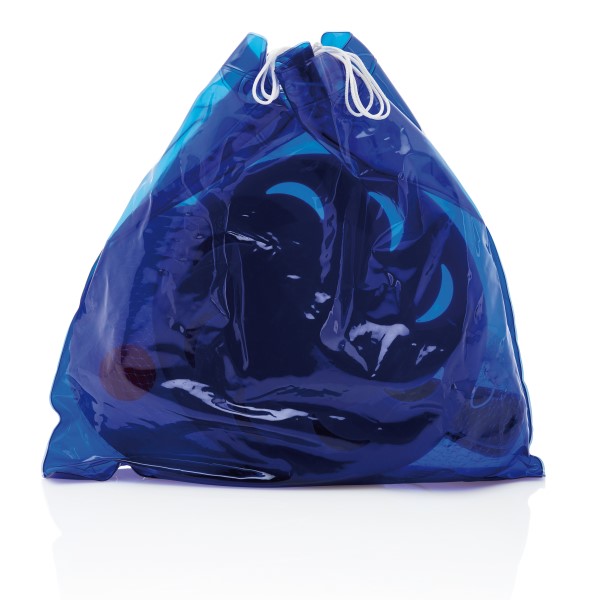 Aufblasbare Kissentasche inkl. Frisbee, Strandschlägerset mit Ball und Strandball.