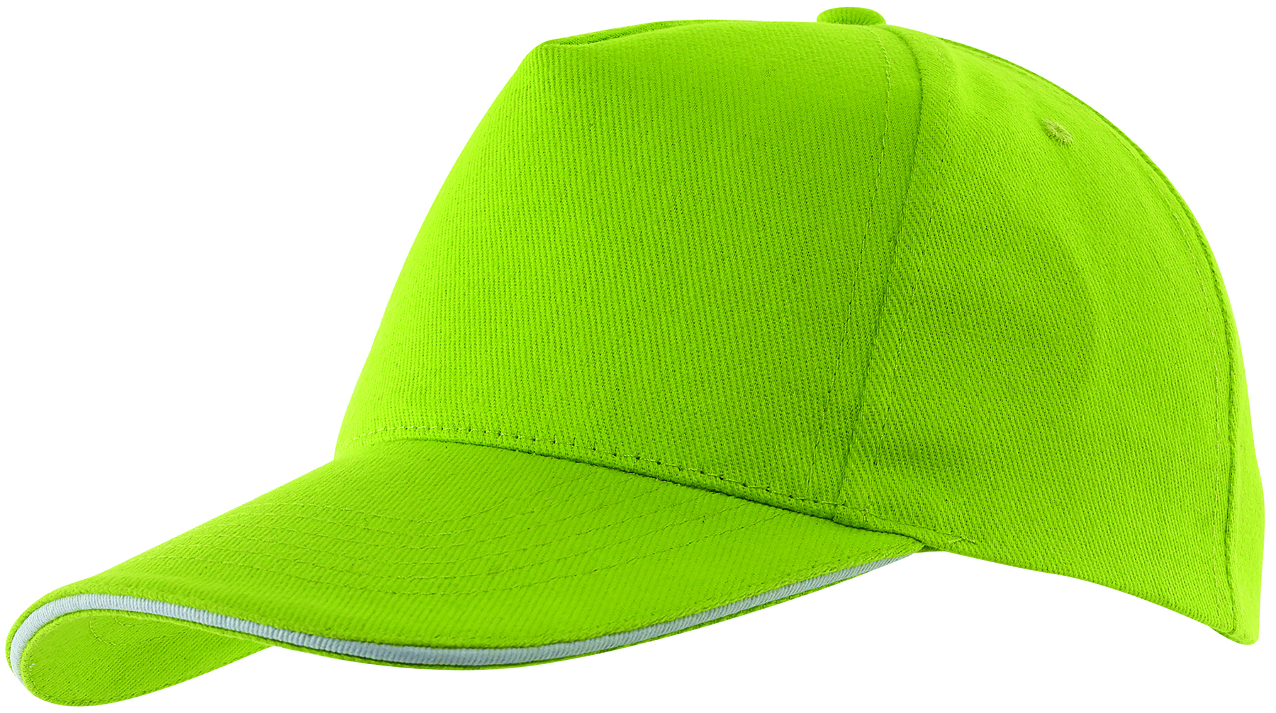 5-Panel-Baseball-Cap SPORTSMAN : gut zu bedruckendes verstärktes Frontsegment – Visier, 4 gestickte Luftlöcher, Nähte sowie Knopf in Neonfarben – größenverstellbarer Klettverschluss am Hinterkopf