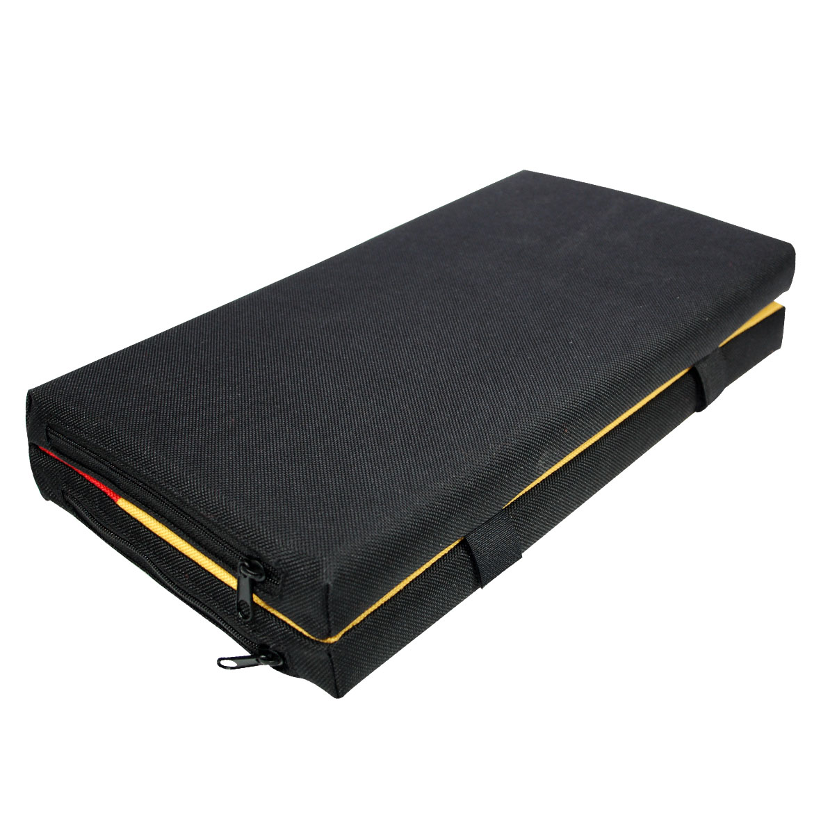Faltbares Sitzkissen mit 3 Segmenten. Dieses faltbare Sitzkissen besteht aus drei Segmenten – passend für jeden, der mit unserem Team mitfiebert in Schwarz-Rot-Gold. Zusammenfaltbar für den Transport, lässt es sich leicht überall mit hinnehmen, um es dann bei Bedarf einfach auseinander zu klappen. Public Viewing auf einer harten Bank? Kein Problem, das Kissen macht sie weich!