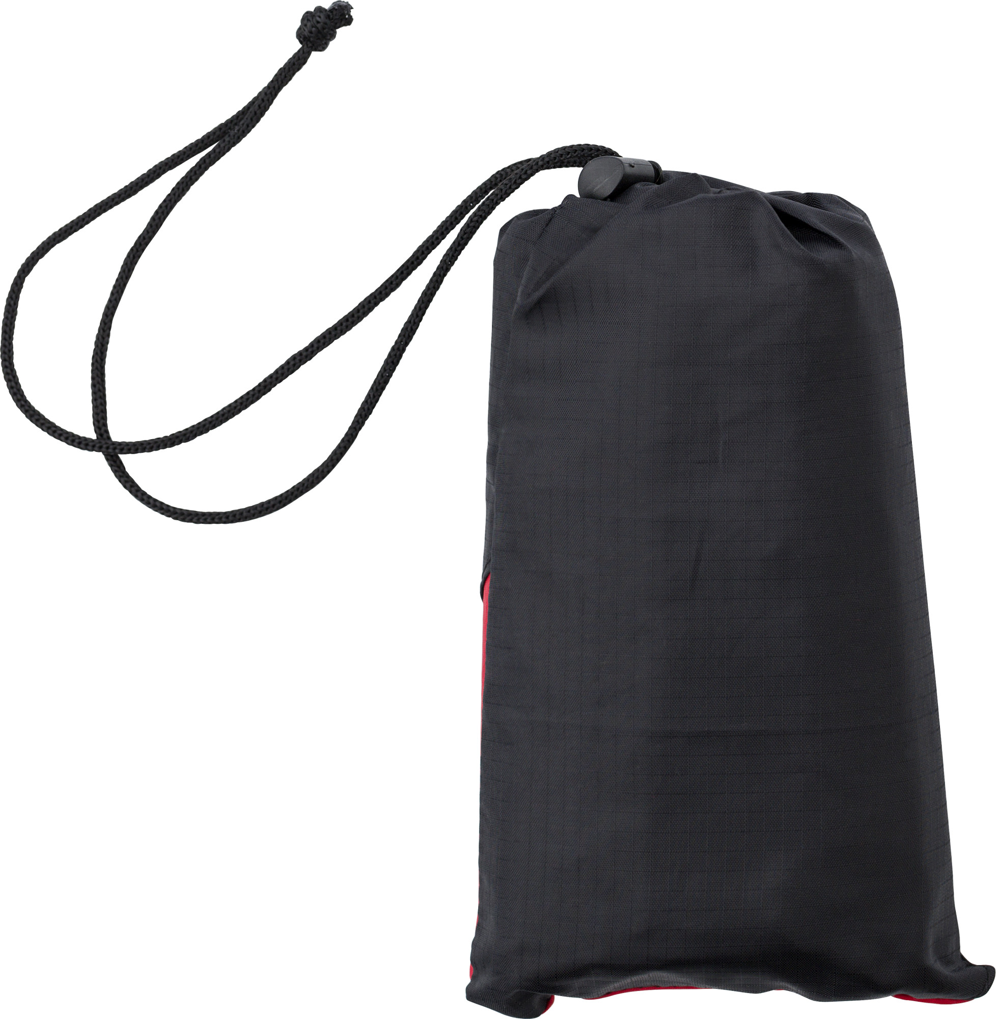 Faltbare, gesteppte Picknickdecke mit kunststoffbeschichtetem PEVA auf der Rückseite. Faltbar zu einer praktischen Tragetasche. Kleine Tasche auf der Frontseite. Verstellbarer Schultergurt.