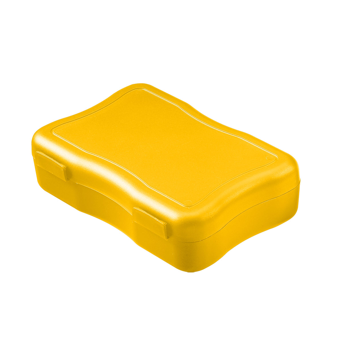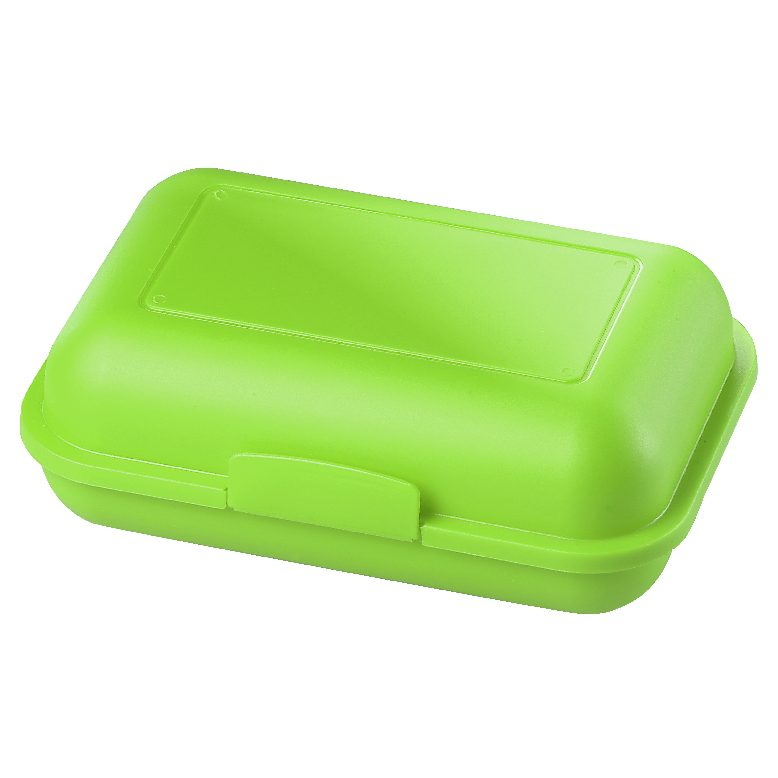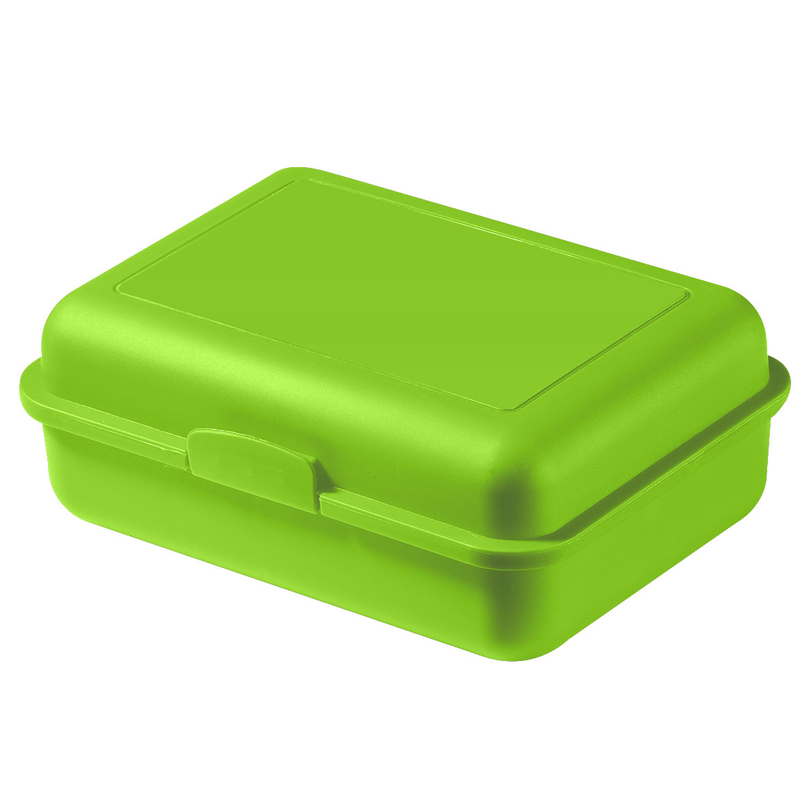 Die ideale Box für das Pausenbrot – mit Klickverschluss sicher verschließbar. In vielen Farben erhältlich und optimal für die Veredelung per IMould-Verfahren geeignet.