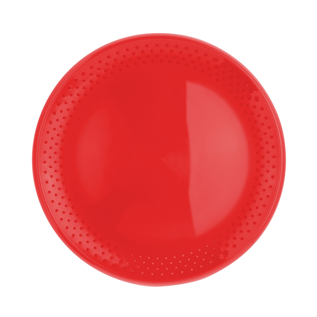 Stabiler Frisbee aus recyceltem post-consuper Kunststoff. Das Material hat aufgrund der Beschaffenheit des recycelten Materials eine gesprenkelte Oberfläche. EN71-konform.