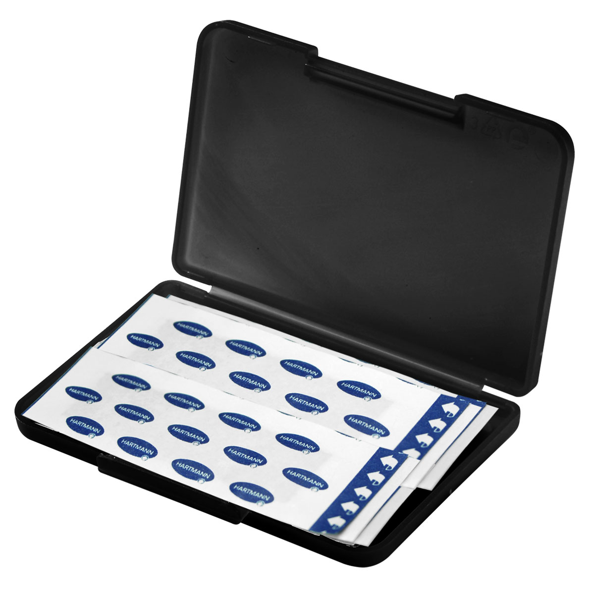 Aufklappbares Pflasteretui aus Strukturklarsicht und Normalfolie. Deutsche Qualitätspflaster in 3 Größen: 20x40mm, 20x60mm und 40x80mm, VPE 800. 8 versiegelte Hartmann-Pflaster