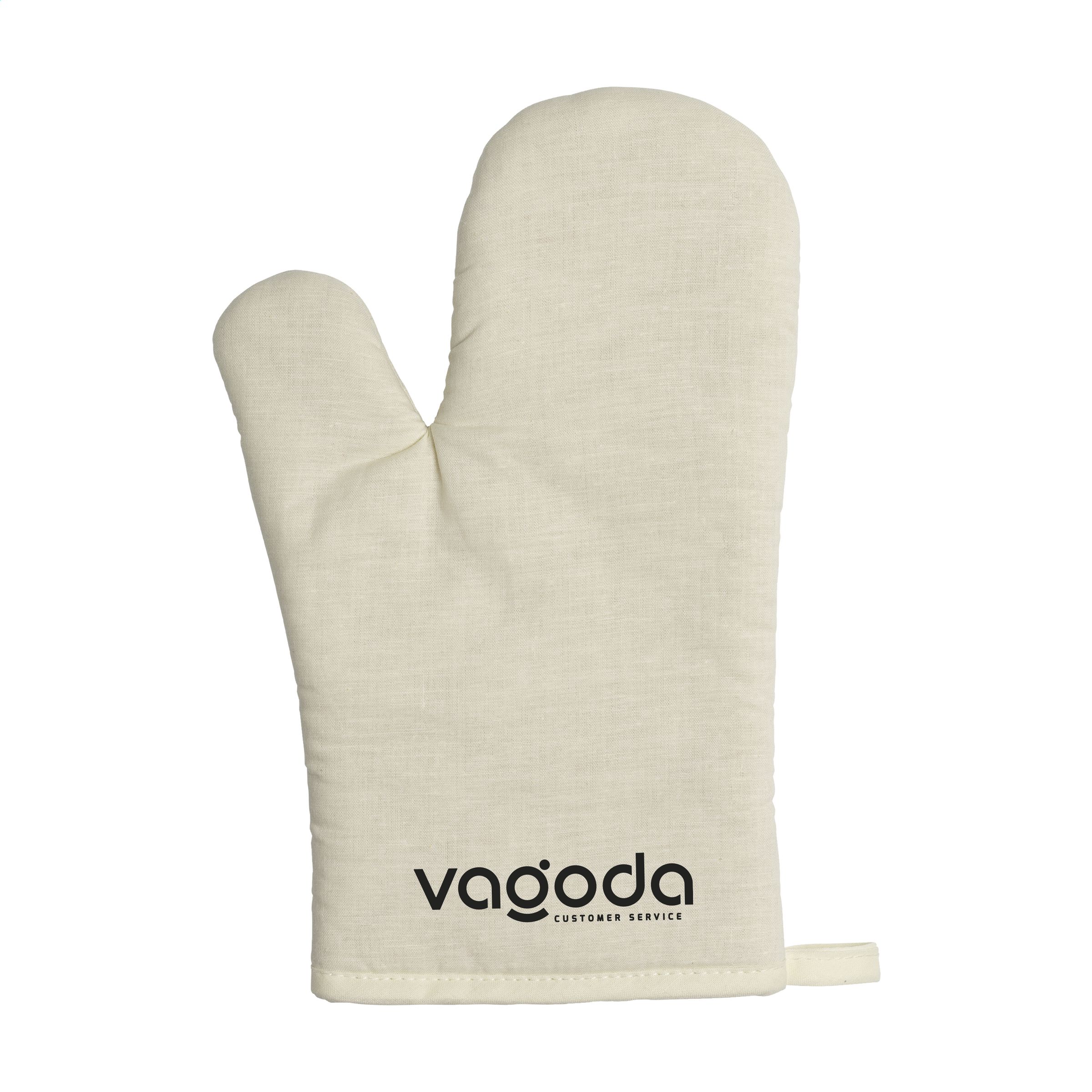 Robuster und dicker Ofenhandschuh aus 100% Baumwolle. Mit Molton gepolstert und gefüttert, an einer Seite durchgesteppt und mit Aufhängschlaufe versehen.