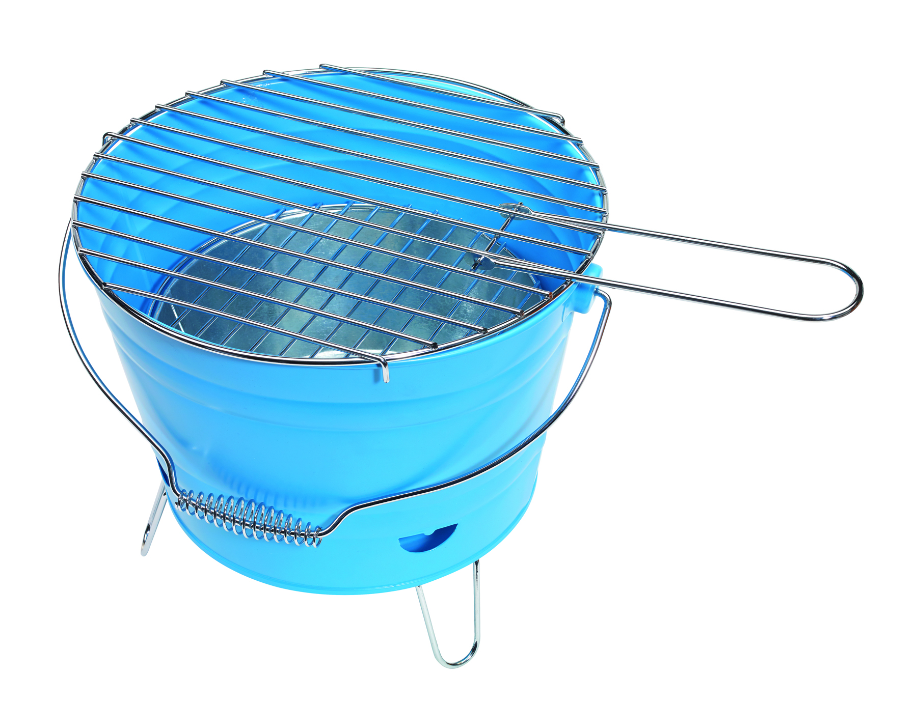 Trichtergrill EVEREST : oben Edelstahl-Trichterbehälter und herausnehmbare Platte mit Luftlöchern, 3-stufig einstellbarer Grillrost mit Holzgriffen, Säule mit Belüftungsfenster und Asche-Auffang-Schublade, stabiler Standfuß, in Geschenkbox Geschenkbox