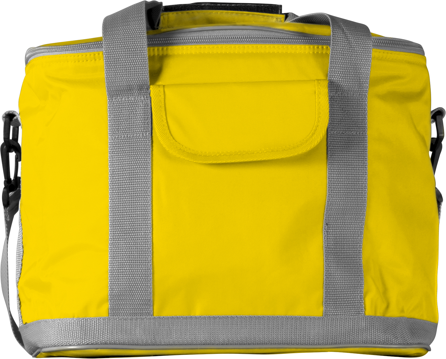 Kühltaschen-Gymbag aus 210D Polyester mit isolierendem Innenfutter und Kordelzug, der auch als Trageriemen dient. Der Werbeaufdruck erfolgt auf einer Seite.