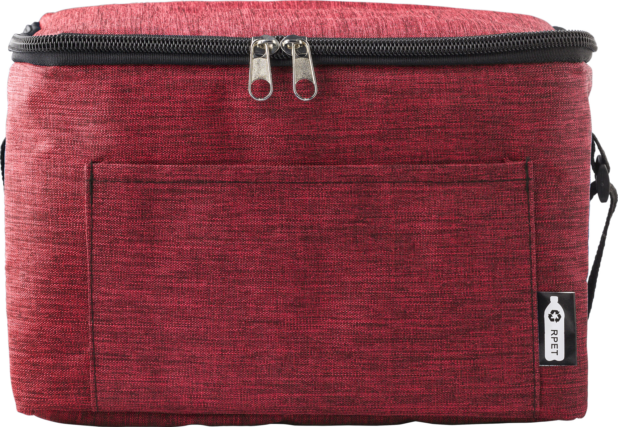 Kühltasche aus 600D-RPET-Polyester-Kühltasche. Geeignet für 6 Getränkedosen. Mit Trageriemen. GRS-zertifiziert. Recyceltes Material insgesamt: 51%. Fassungsvermögen ca. 3 Liter.