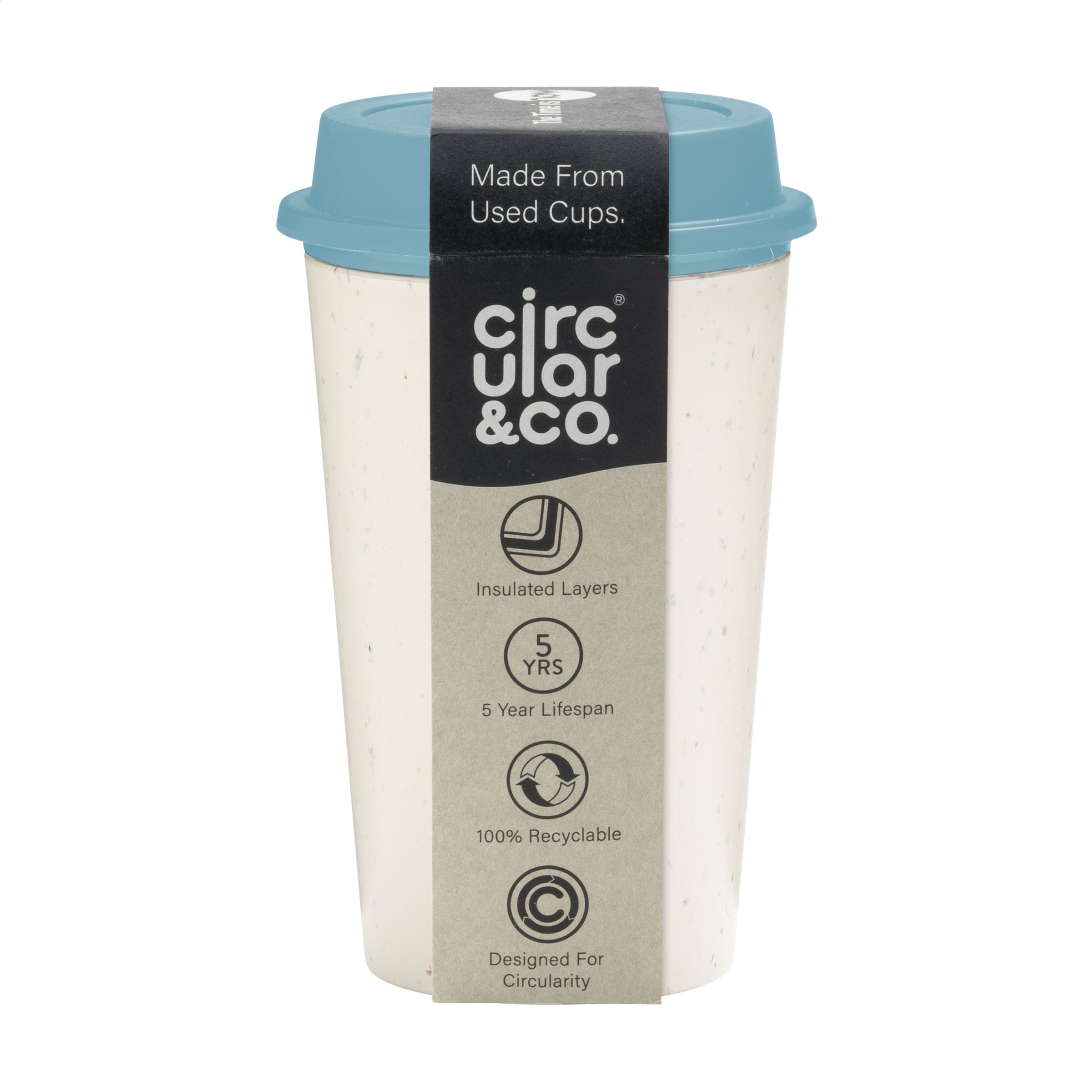 Doppelwandiger Isolierbecher mit drehbarem, auslaufsicherem Deckel und einem vollfarbigen Rundum-Design. Hergestellt aus insgesamt 70 % recyceltem Material (recycelter Becher und schwarze Innenschicht) und mit einem Standard-PP-Deckel. Der Becher ist vollständig recycelbar, spülmaschinenfest und mikrowellengeeignet. 350 ml Fassungsvermögen und BPA-frei. Verpackt in einem kompostierbaren Beutel. Hergestellt in UK.