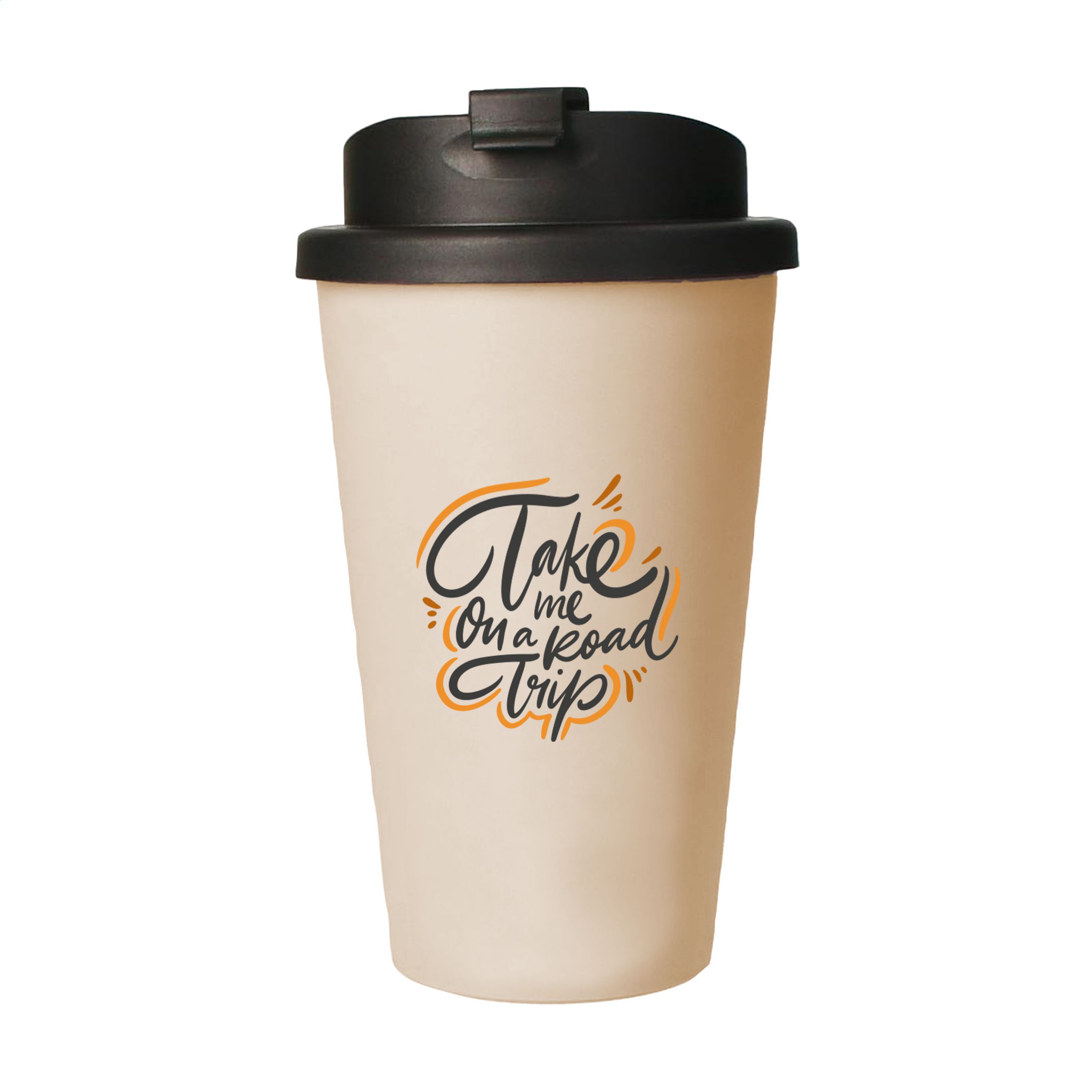 WoW! Doppelwandiger Kaffeebecher-to-go aus 100% recycelbarem Biokunststoff. Hält heiße oder kühle Getränke auf Temperatur. Dieser haltbare Becher hat einen Deckel mit Schraubverschluss mit einer Trinköffnung mit einem integriertem Verschluss um versehentliches Auslaufen zu verhindern. Passt in den Standard-Trinkbehälter von Autos, was praktisch für unterwegs ist. BPA-frei, lebensmittelecht, geruchs- und geschmacksneutral. Fassungsvermögen: 350 ml. Made in Germany.