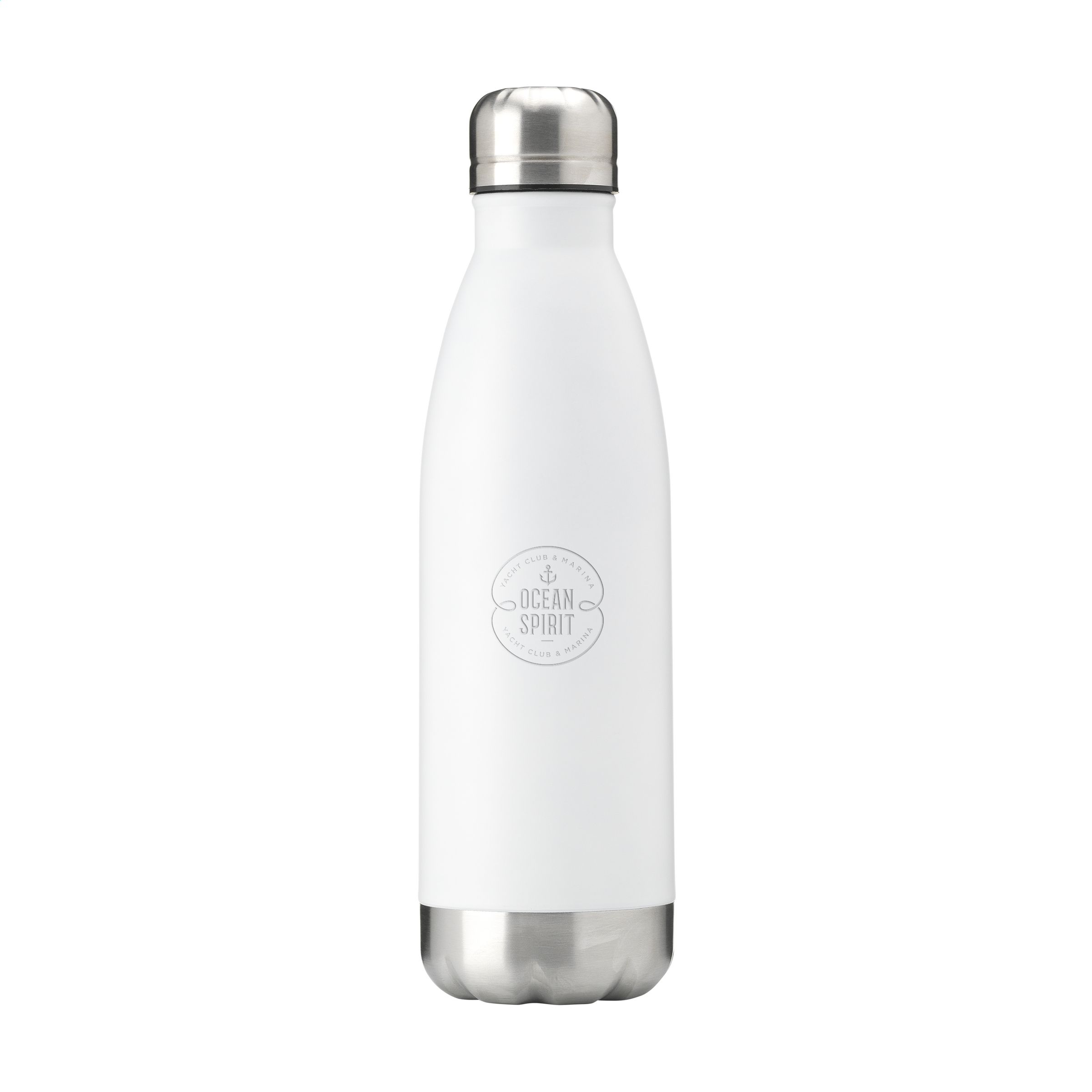 Doppelwandige, vakuumisolierte, rostfreie Wasserflasche/Thermoflasche. Mit tropfsicherem Schraubdeckel. Hergestellt in Metallic oder mit schöner, matter Beschichtung (nur schwarz und weiß). Geeignet zur Temperaturerhaltung von kaltem oder heißem Wasser. Fassungsvermögen 500 ml. Wird einzeln in einem Kraftkarton geliefert.