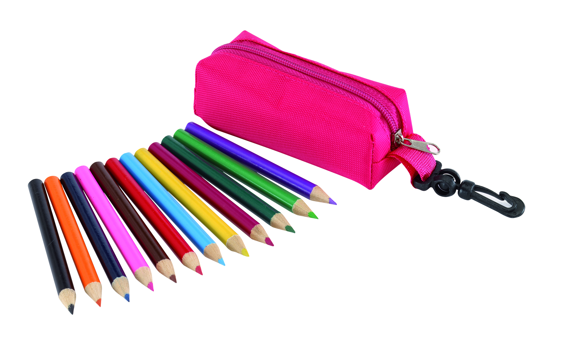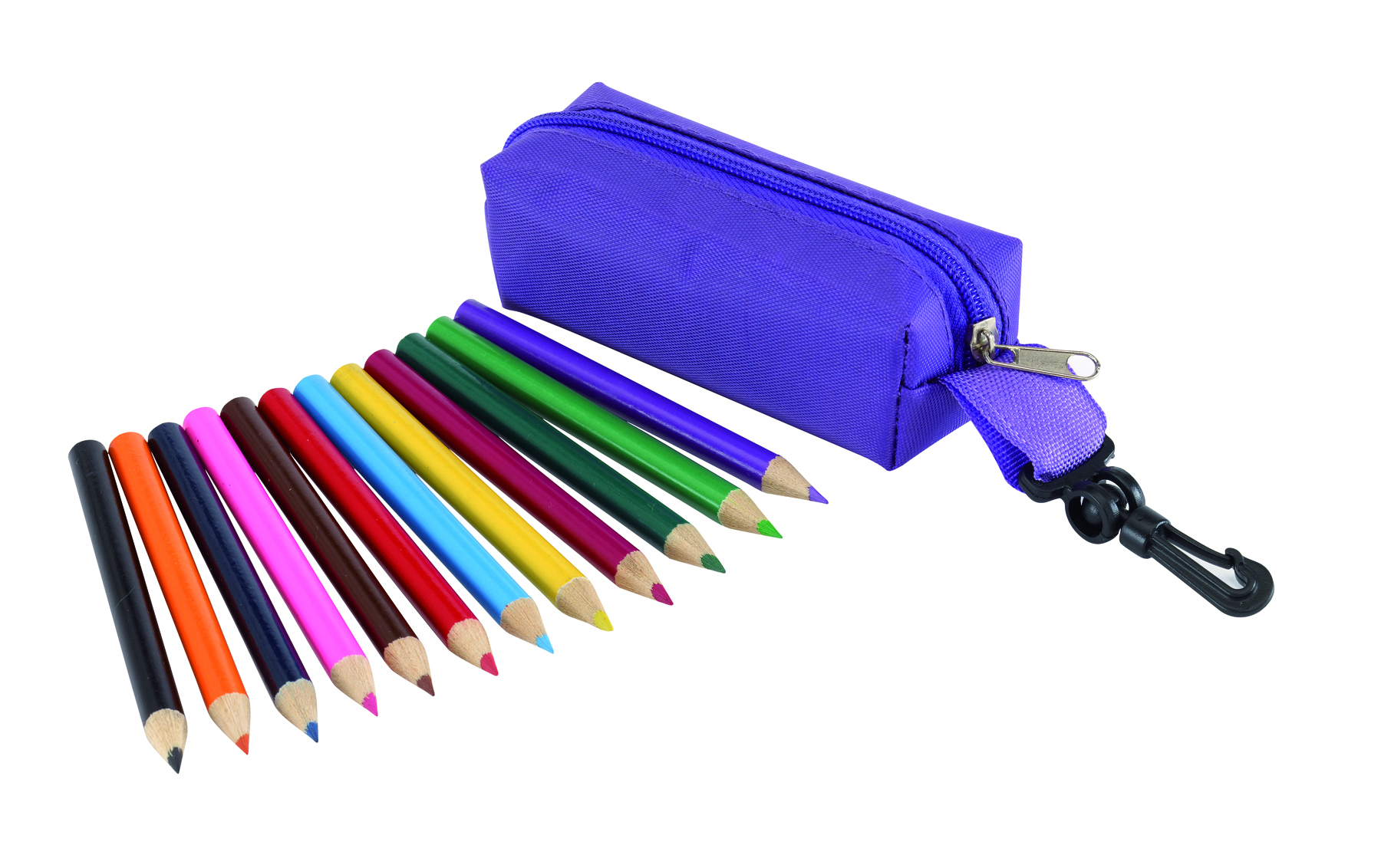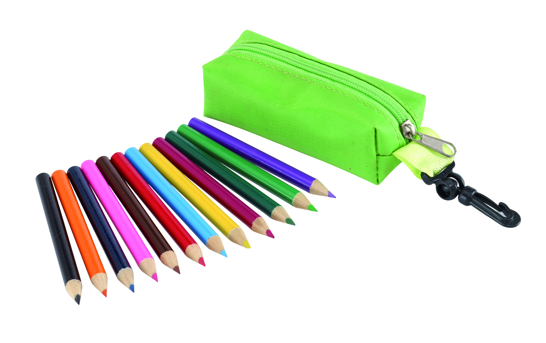 <p>6 Buntstifte im PVC-Etui. Werbeanbringung mit einem Aufkleber auf dem Etui.</p><ul><li>Standardschreibfarben: braun, blau, gelb, grün, rot, schwarz</li></ul>