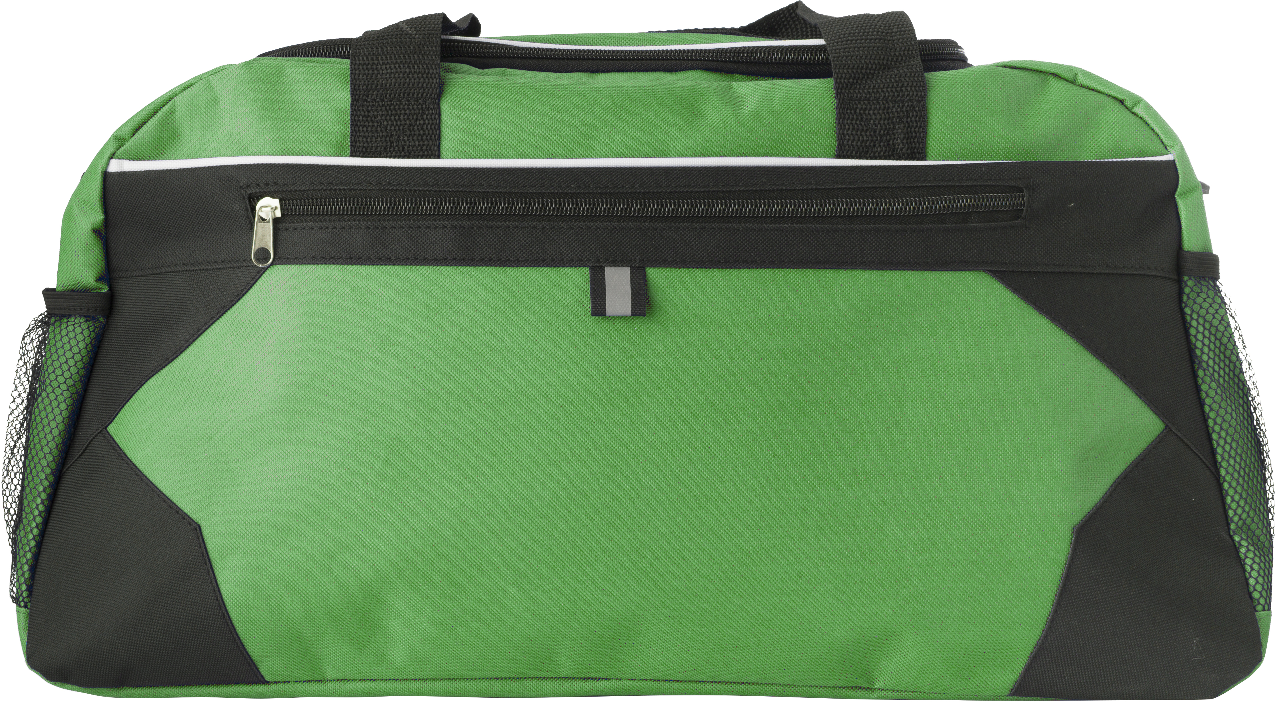 Sporttasche aus Polyester (600D), mit RV-Haupt- und Frontfach, seitlichen Netzfächern, verstellbarem Schultergurt und Tragegriffen.