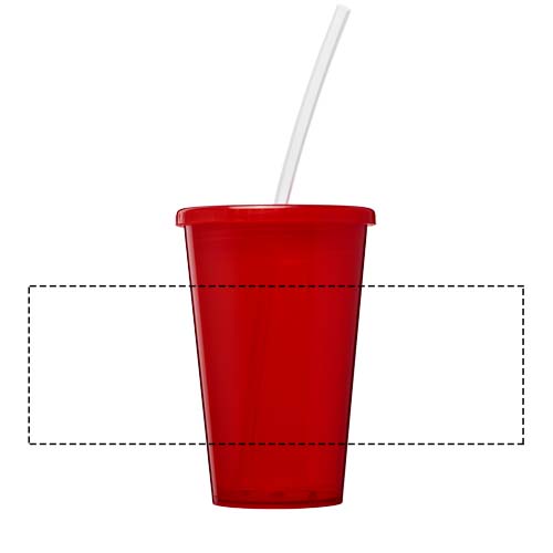 Doppelwandiger, lichtdurchlässiger Isolierbecher. Lieferung mit PE-Strohhalm. Das Fassungsvermögen beträgt 350 ml. Hergestellt in Großbritannien. EN12875-1 - konform und spülmaschinengeeignet.