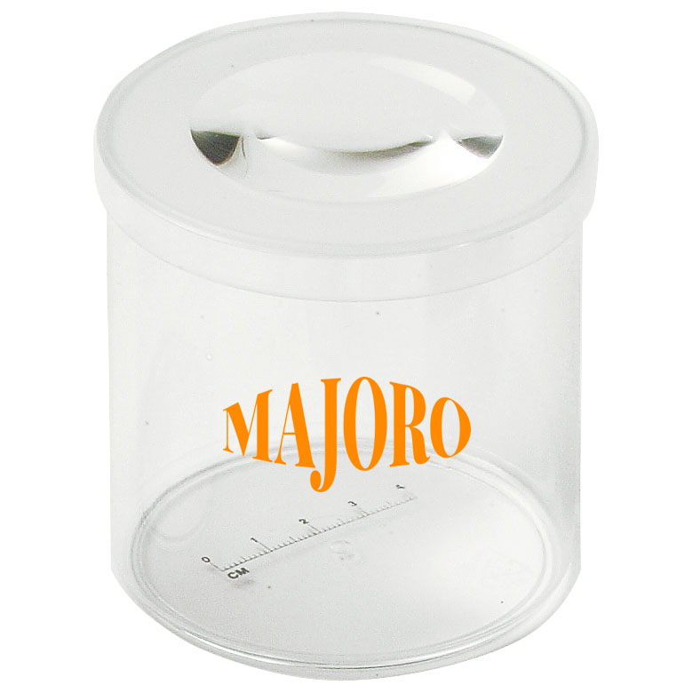 Praktisches Vergrößerungsglas mit 4 cm Messskala im Boden. Einfach auf die zu vergrößernde Abbildung stellen.