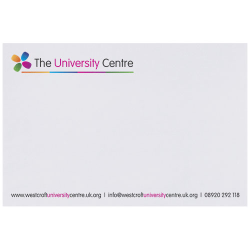 Sticky-Mate® Haftnotizen mit selbstklebendem 80 g/m2 Papier. Ein vollfarbiger Druck ist auf jedem Blatt möglich. Erhältlich in 3 Größen: 25, 50, 100 Blatt.