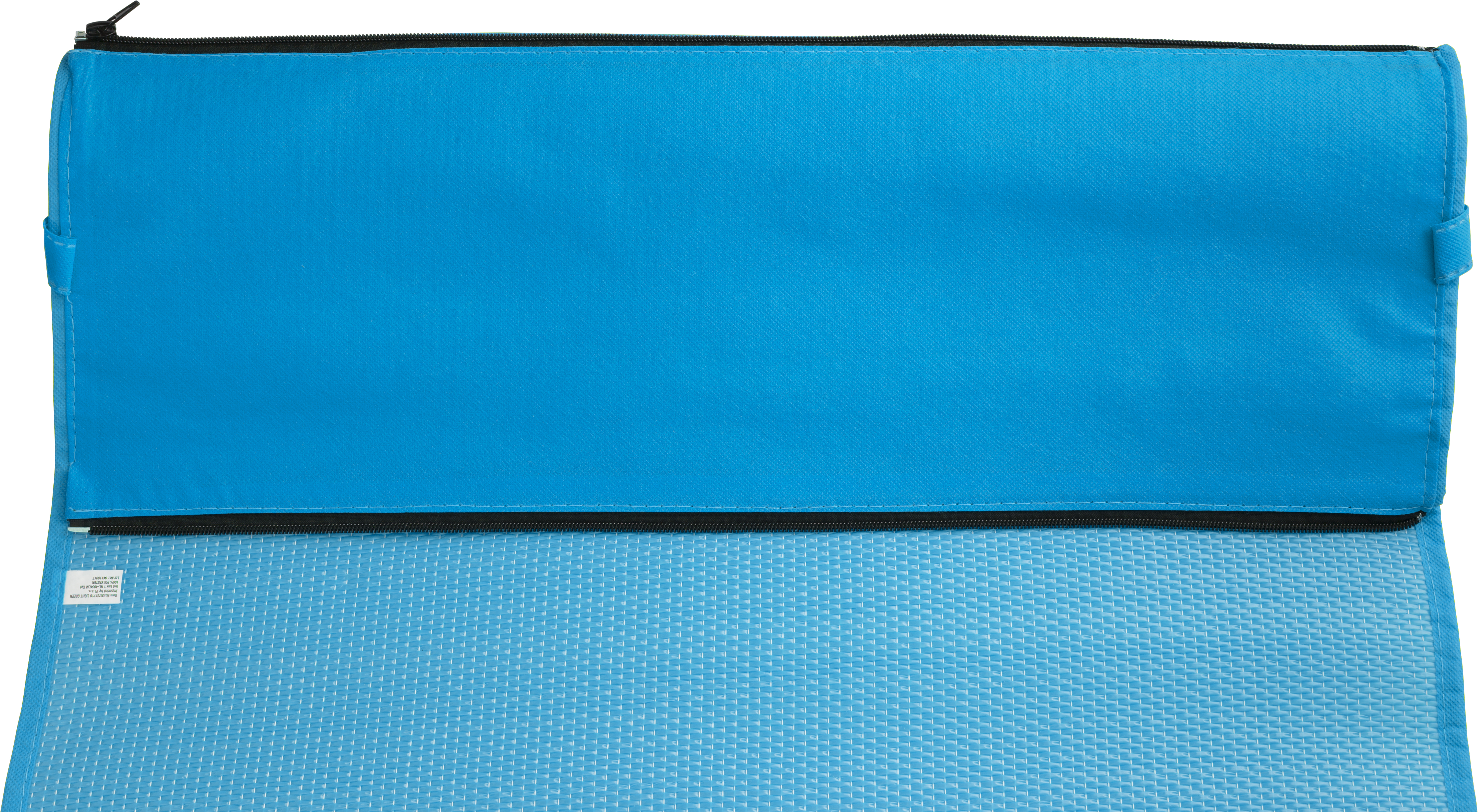 Strandmatte aus Non-Woven, mit einer Auflage aus PVC, Reißverschluss und Tragegriff für den einfach Transport.