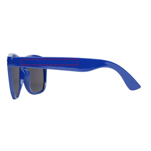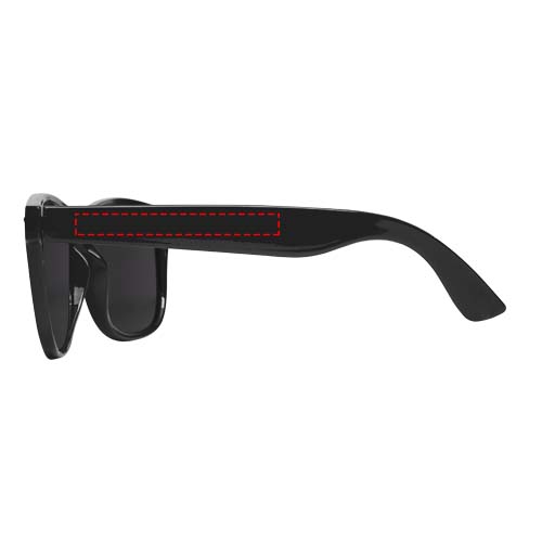 Diese nachhaltige Sonnenbrille im Retro-Design ist der ideale Werbeartikel für Sommerfestivals, Veranstaltungen oder andere sonnige Aktivitäten im Freien. Dank des recycelten PET-Kunststoffs ist die Sonnenbrille leicht und angenehm zu tragen. Diese Brille entspricht der Norm EN ISO 12312-1, hat UV400-Gläser der Kategorie 3 und ist somit die perfekte Wahl für den Schutz vor hellem Sonnenlicht.