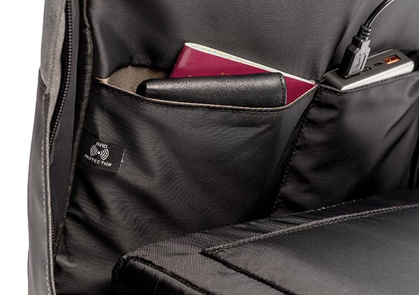 Dieser 15.6'' Laptoprucksack verfügt über einen speziellen Anti-Diebstahl-Reißverschluss, welcher versteckt liegt und auf den somit von außen nicht zugegriffen werden kann. So können Sie all Ihre Elektronik und persönlichen Gegenstände sicher transportieren. Im Inneren befindet sich ein gepolstertes Laptop- und Tabletfach um den optimalen Schutz Ihrer Geräte zu bieten. Der Rucksack ist RFID geschützt und verfügt über einen USB Output um Ihre elektronischen Geräte einfach auch unterwegs mit einer Powerbank laden zu können.