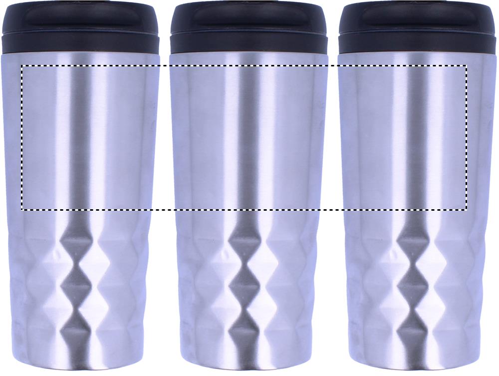 Doppelwandiger Trinkbecher aus Edelstahl. Innenbeschichtung und Deckel aus PP. Füllmenge: 280 ml.