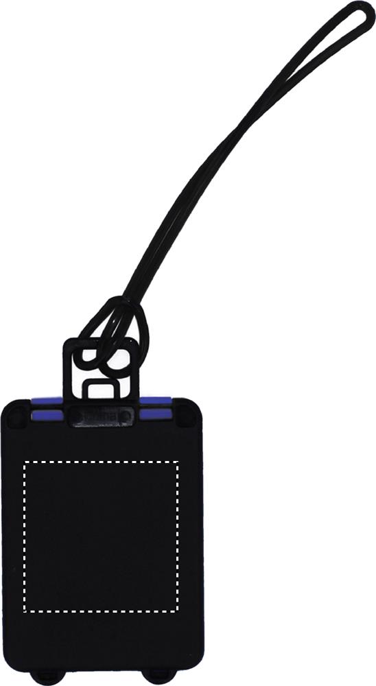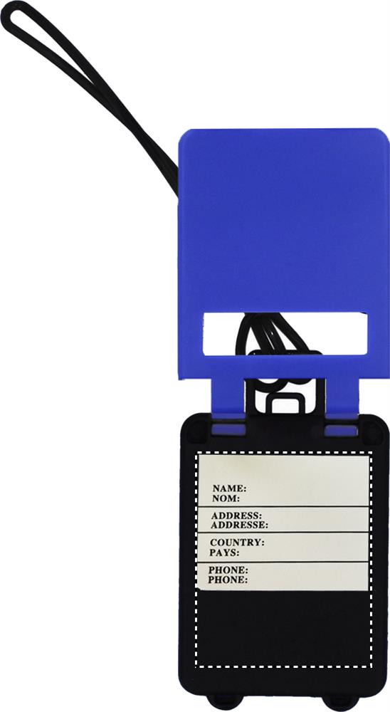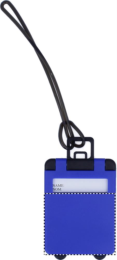Kofferanhänger mit verstecktem Adressfeld. Aus Kunststoff.