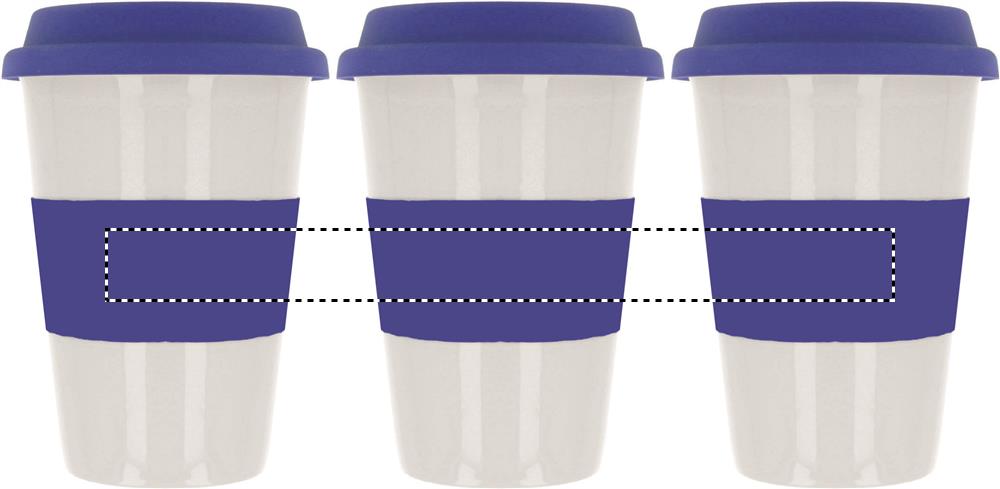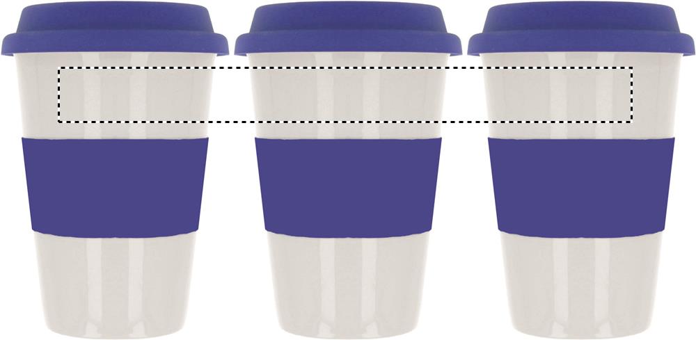 Einwandiger Keramikbecher mit Silikon-Deckel und einem Silikon-Griff . Füllmenge 400ml. Nur Keramik-Transferdruck ist spülmaschinengeeignet. Da Keramik die Hitze nach außen leiten kann, kann der Artikel heiß werden.