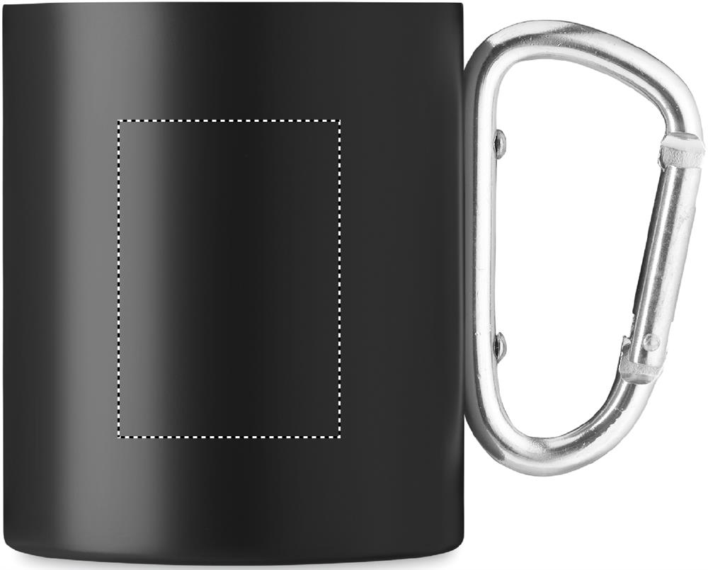 Doppelwandiger Trinkbecher aus Edelstahl. Henkel mit Karabiner. Füllmenge: 300 ml. Der Karabiner ist NICHT als Sicherung beim Klettern geeignet.