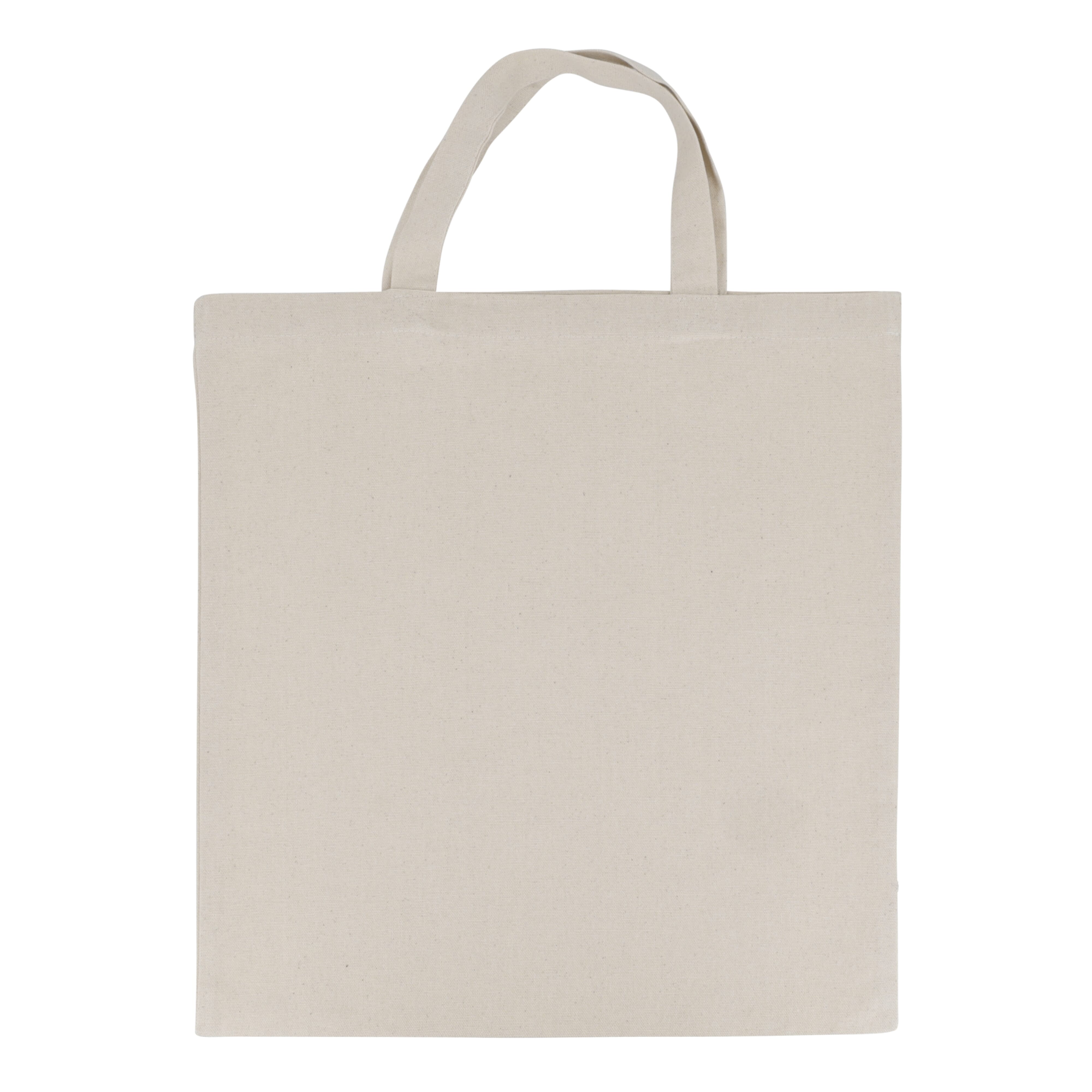 Klassische Tragetasche aus Baumwolle mit kurzen Henkel, ideal für Werbeaktionen und Konferenzen. Diese Tasche ist OEKO-TEX®-zertifiziert und damit eine nachhaltige Wahl.
