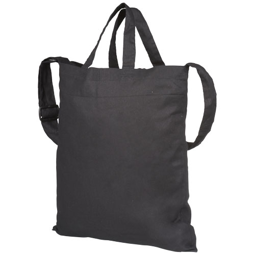 Multifunktionaler Baumwolltsportbeutel mit langen Griffen und Kordelzug, der als Tasche oder Rucksack getragen werden kann. Großes Hauptfach mit Kordelzugverschluss. Mit zwei herunterklappbaren Griffen von 31 cm Länge. Kapazität: 1,5 l, für bis zu 5 kg Gewicht.