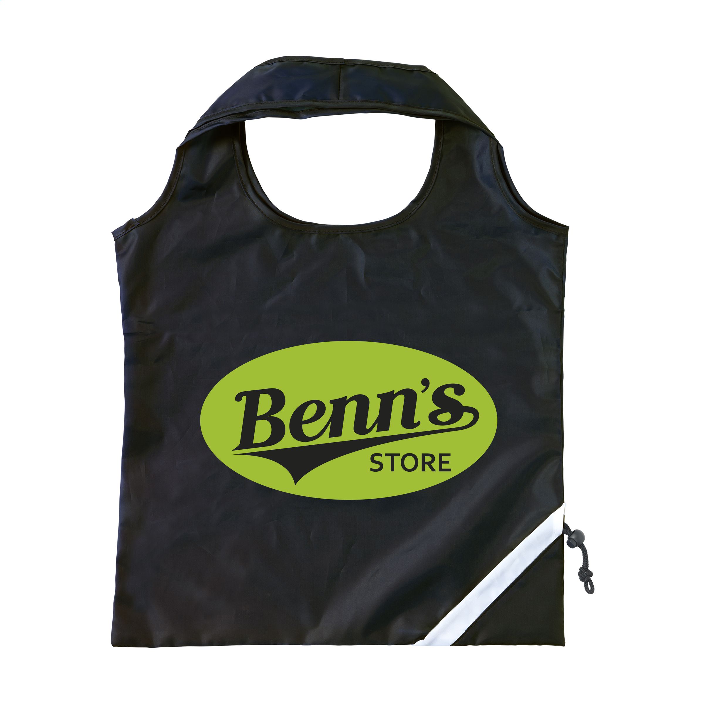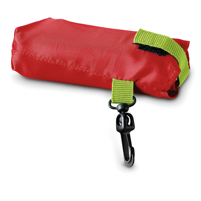 Praktische Einkaufstasche mit Karabinerhaken. Der Artikel wird ungefaltet geliefert. Auf Anfrage kann er auch gefaltet geliefert werden. 190T Polyester.