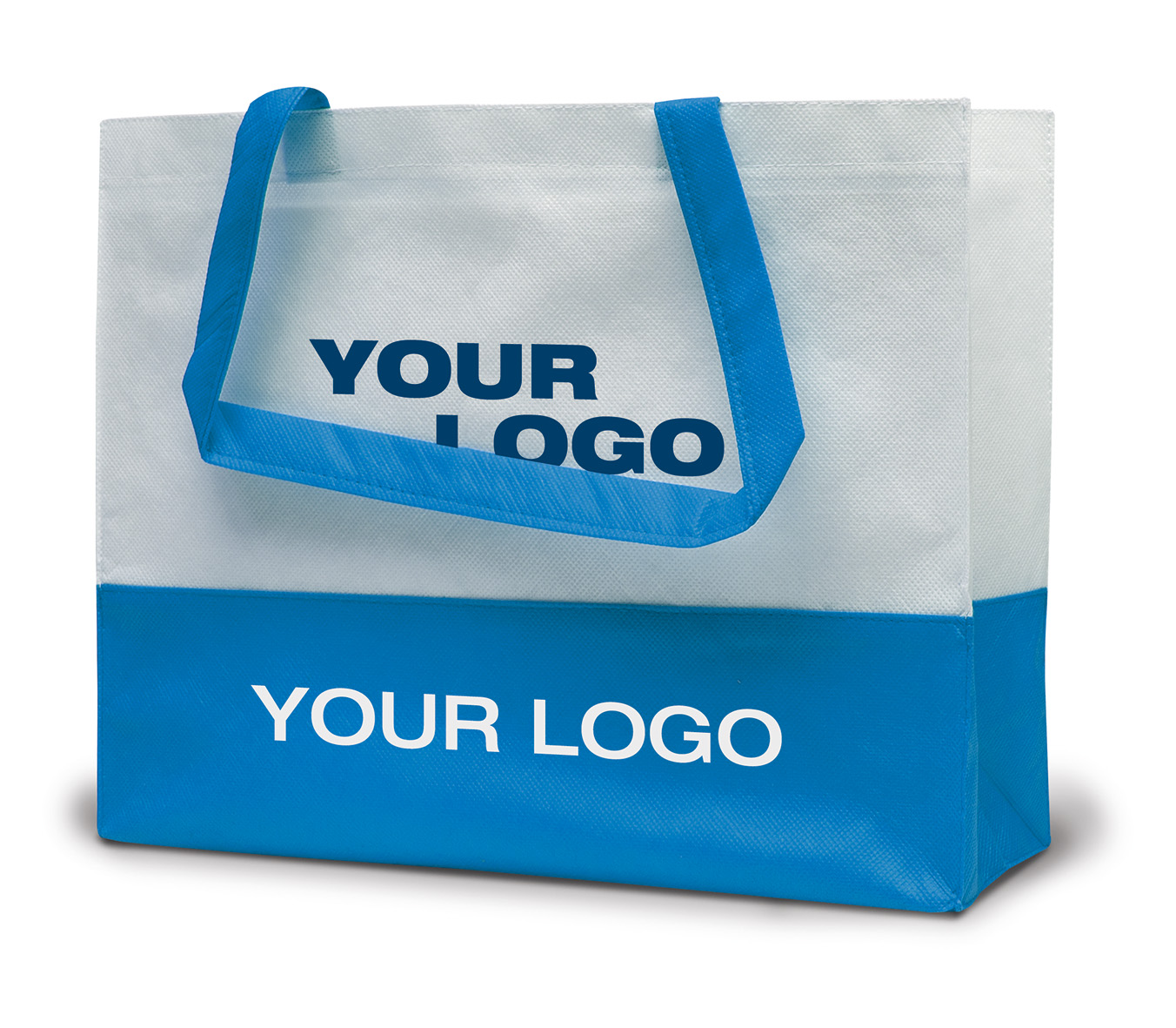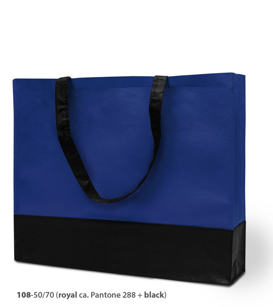 PP Non-Woven. 50x32x30. Einkaufs-/Strandtasche, Boden-, Seitenfalte und langen Griffen.