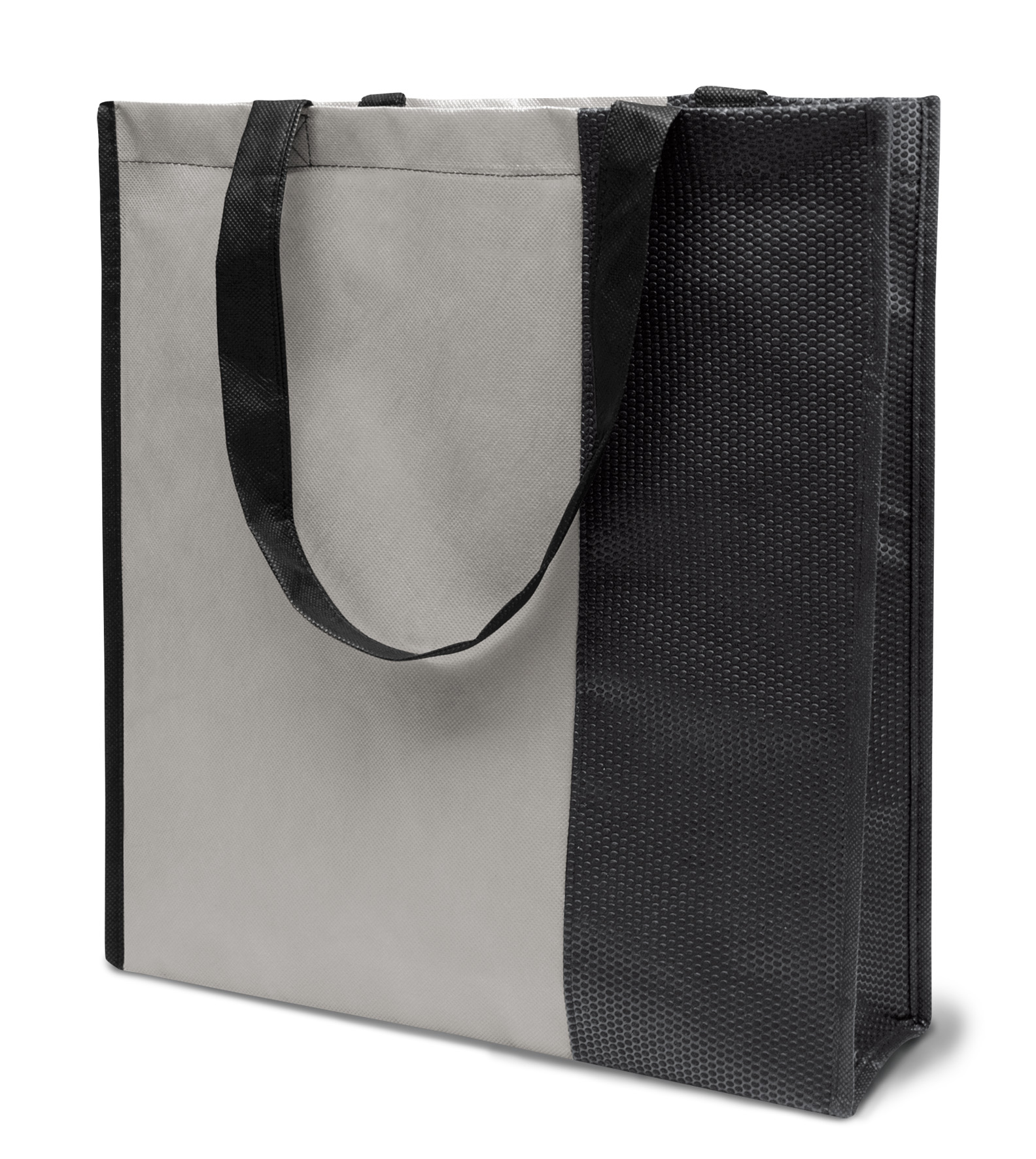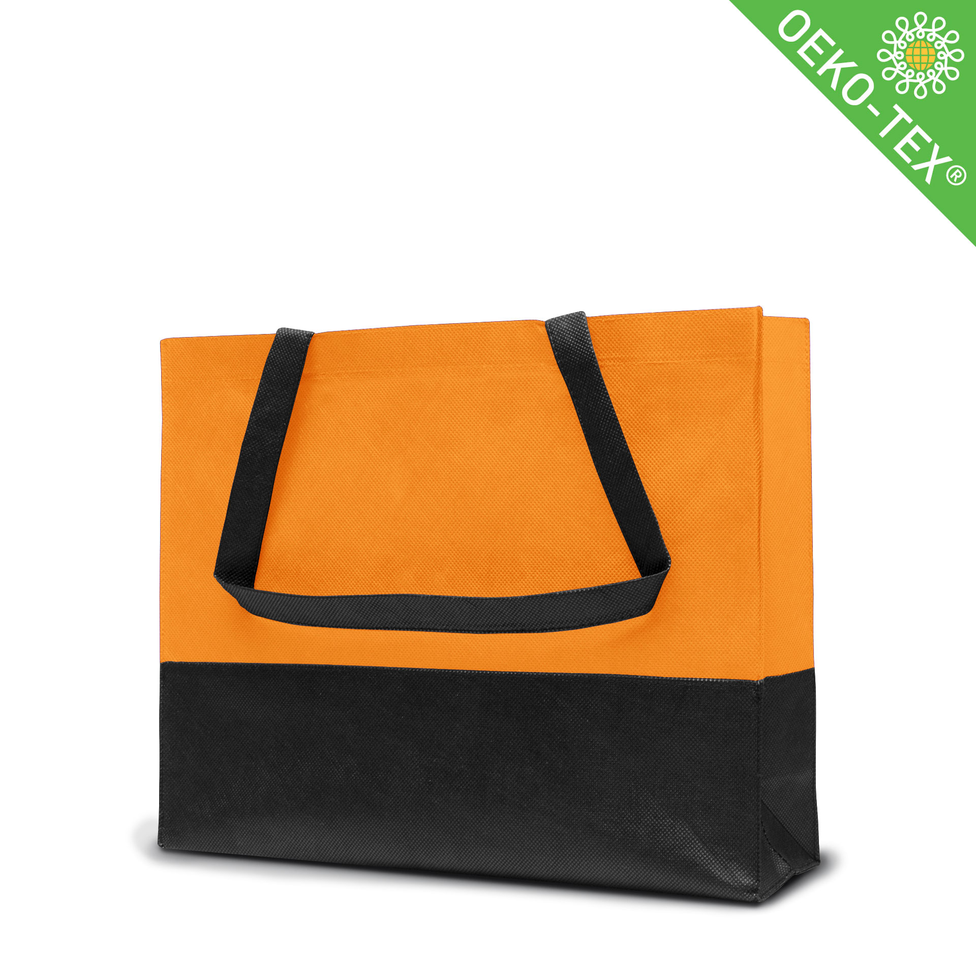 PP Non-Woven. 38x42. Einkaufstasche, 3-farbig, mit langen Griffen.