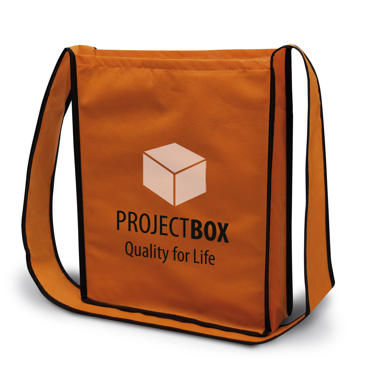 PP Non-Woven. 30x37x8. Umhängetasche mit langem Schultergurt, Boden- und Seitenfalte.