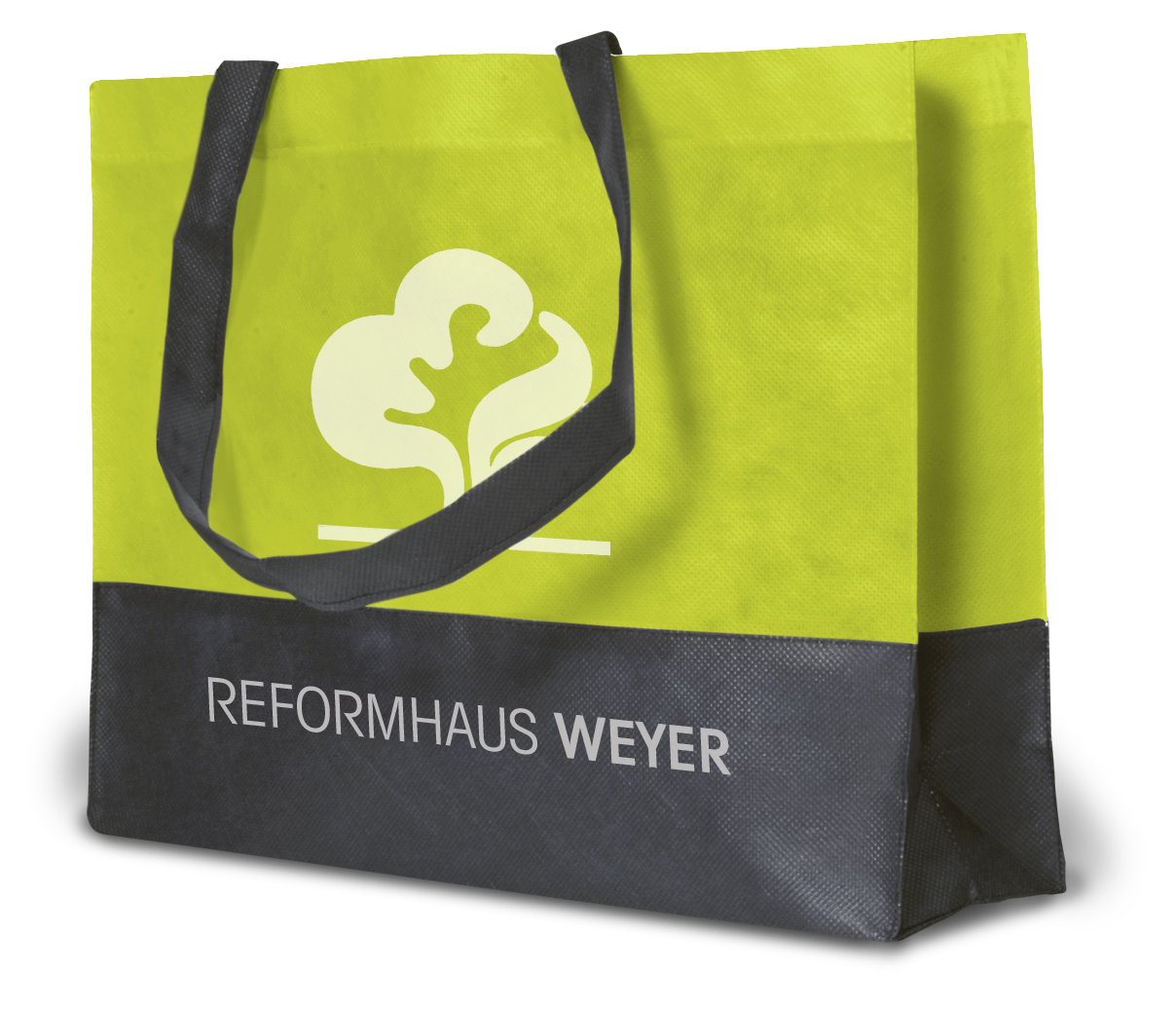 PP Non-Woven. 38x29x10. Einkaufstasche mit Boden-,. Seitenfalte und kurzen Griffen.